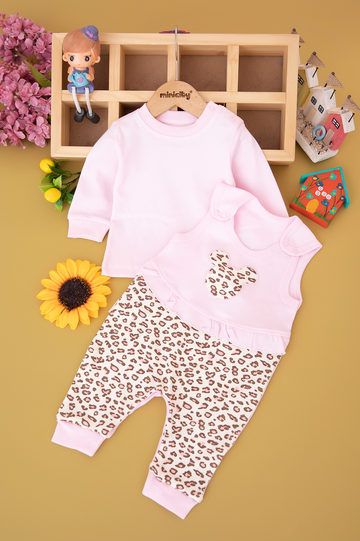 Kız Bebek Leopar Baskılı Salopet Takım - 3009 (3-12 Ay)