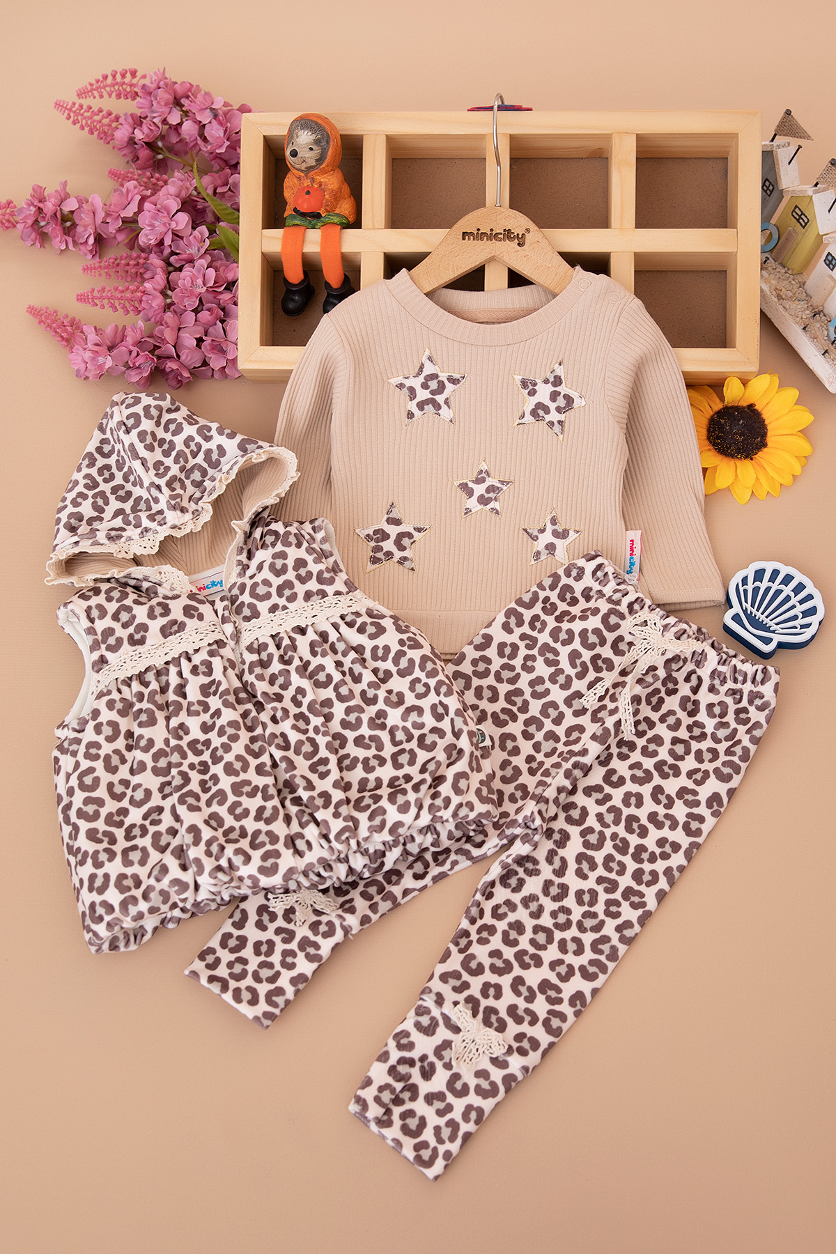 Kız Bebek Leopar Baskılı Yelekli Takım - 2041 (6-18 Ay)