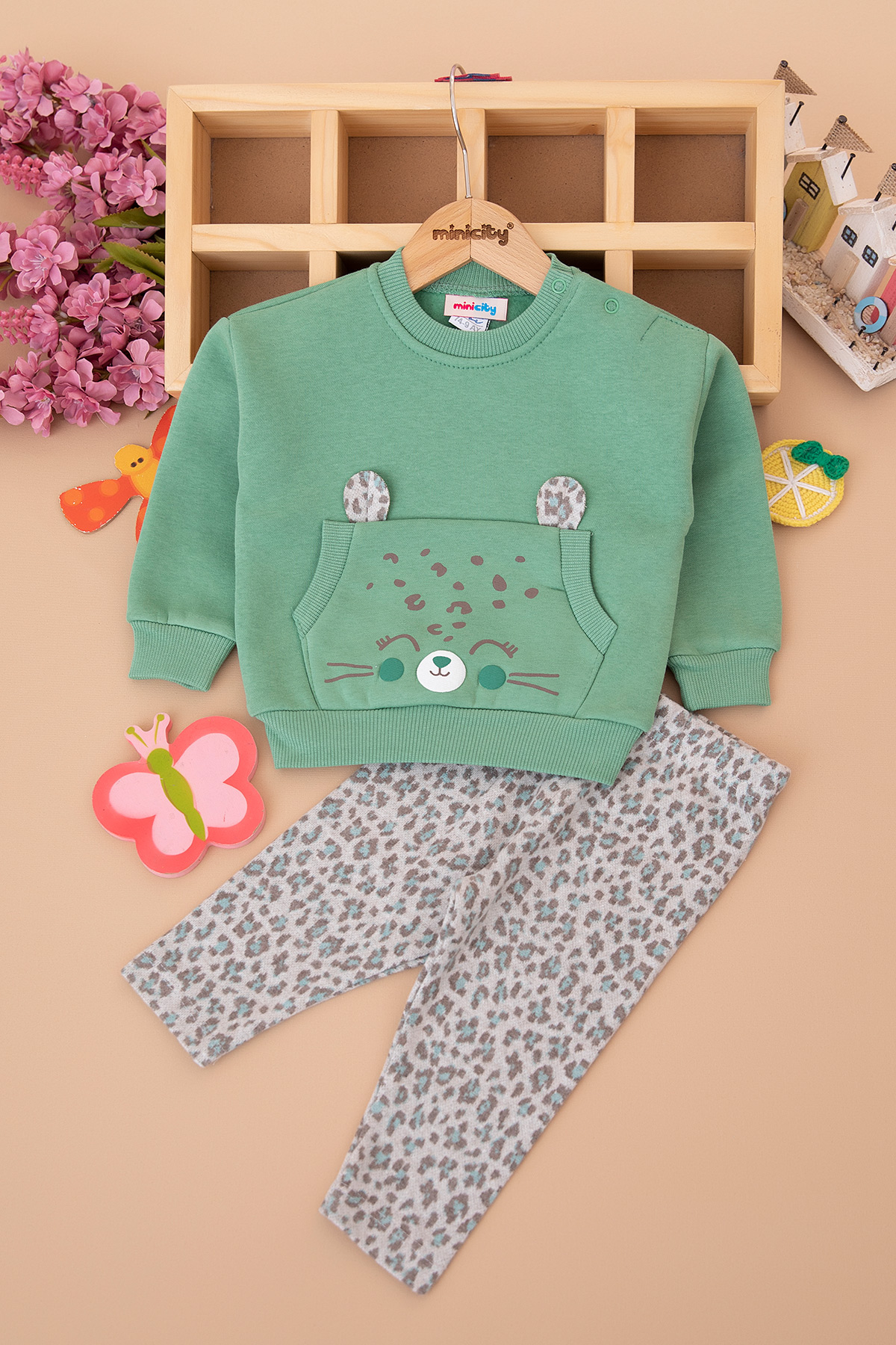Kız Bebek Leopar Desenli Üçip Takım - 25968 (9-24 Ay)