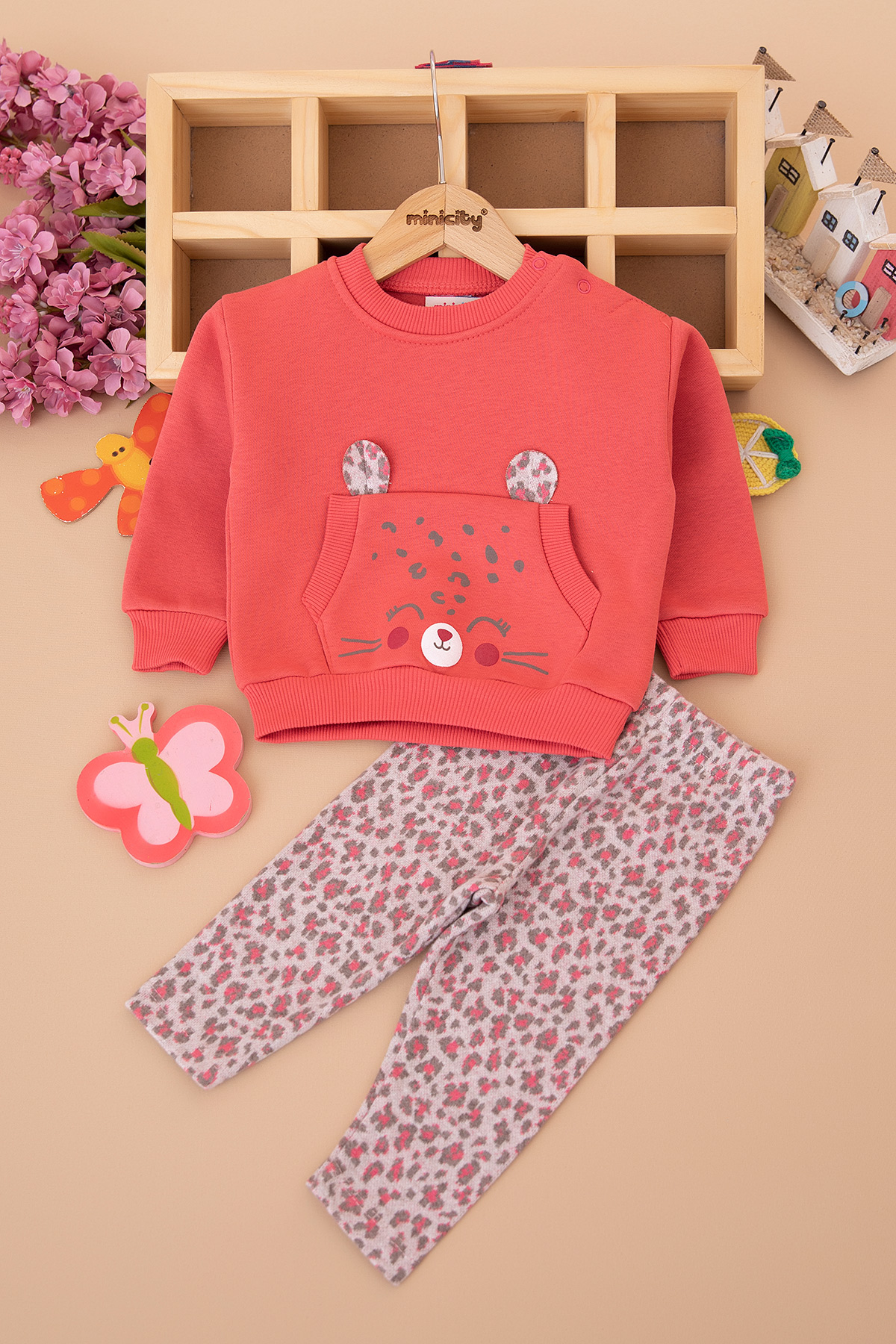 Kız Bebek Leopar Desenli Üçip Takım - 25968 (9-24 Ay)