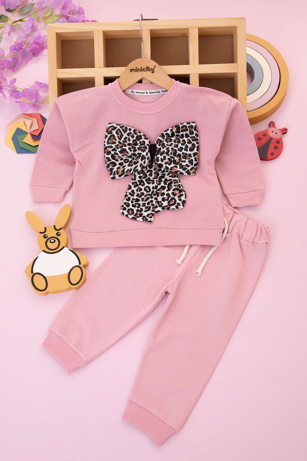 Kız Bebek Leopar Fiyonklu Takım - 9206 (9-24 Ay)