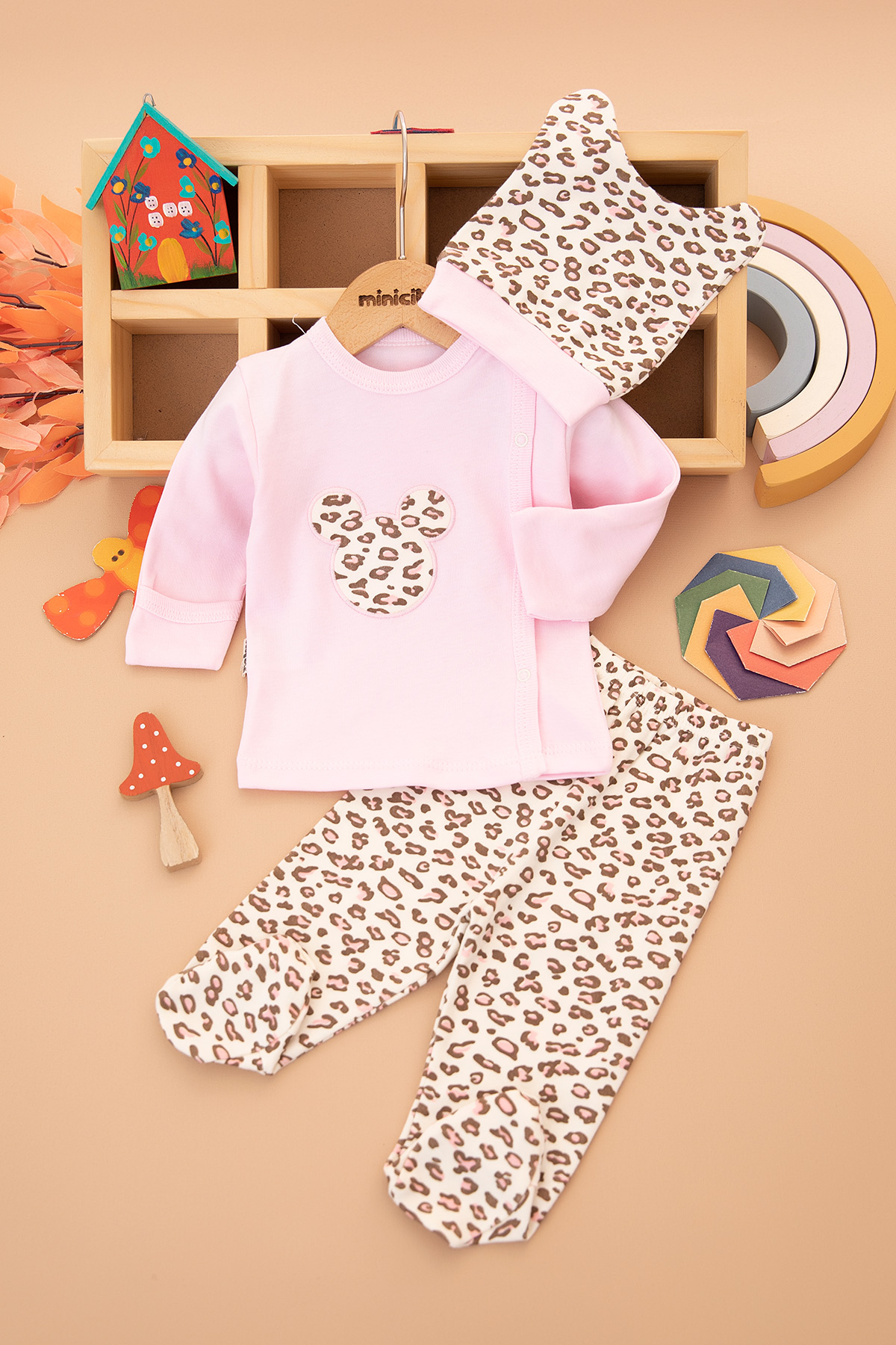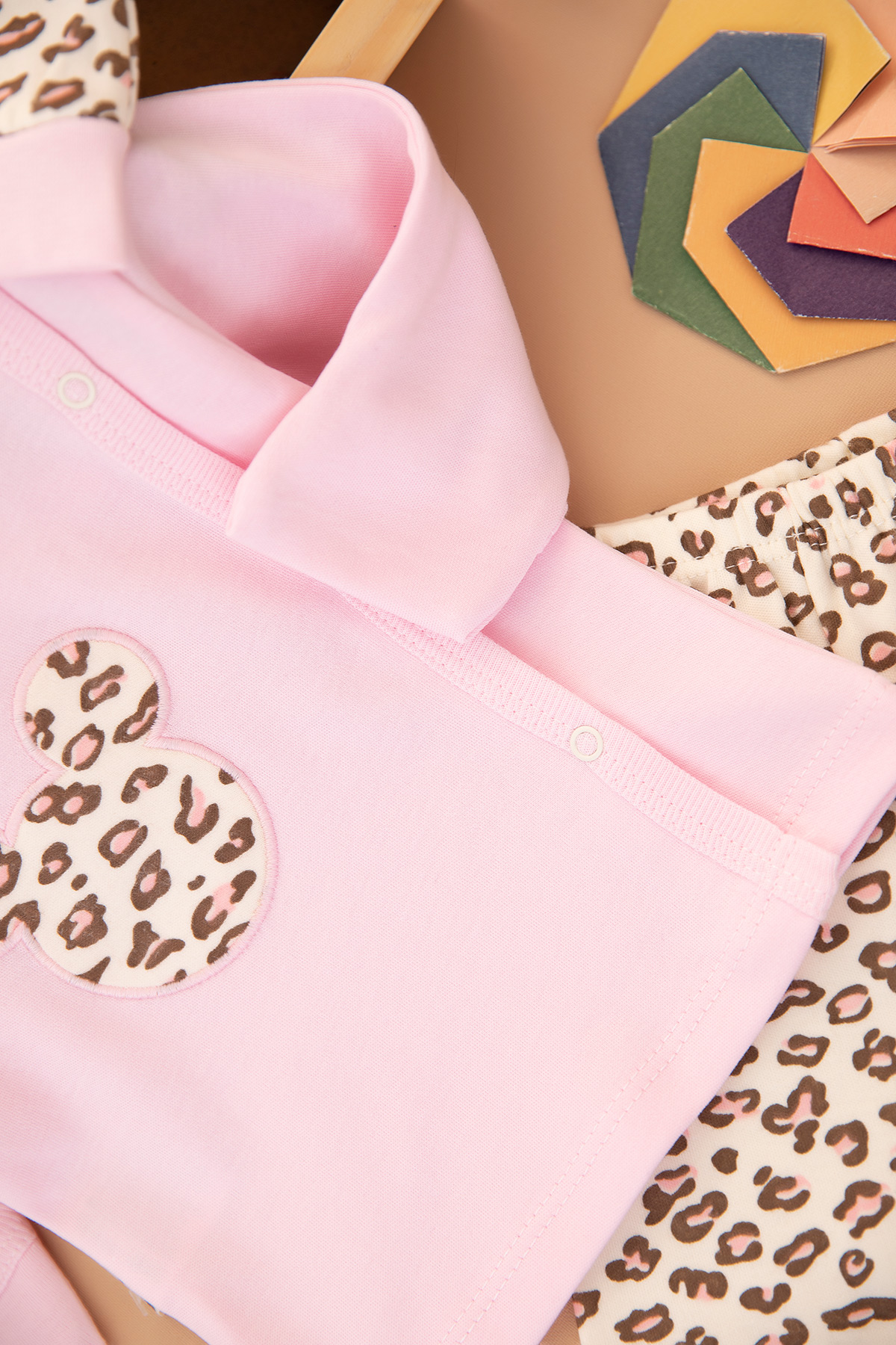 Kız Bebek Leopar Miki Nakışlı Zıbın Takım - 9423 (0-3 Ay)