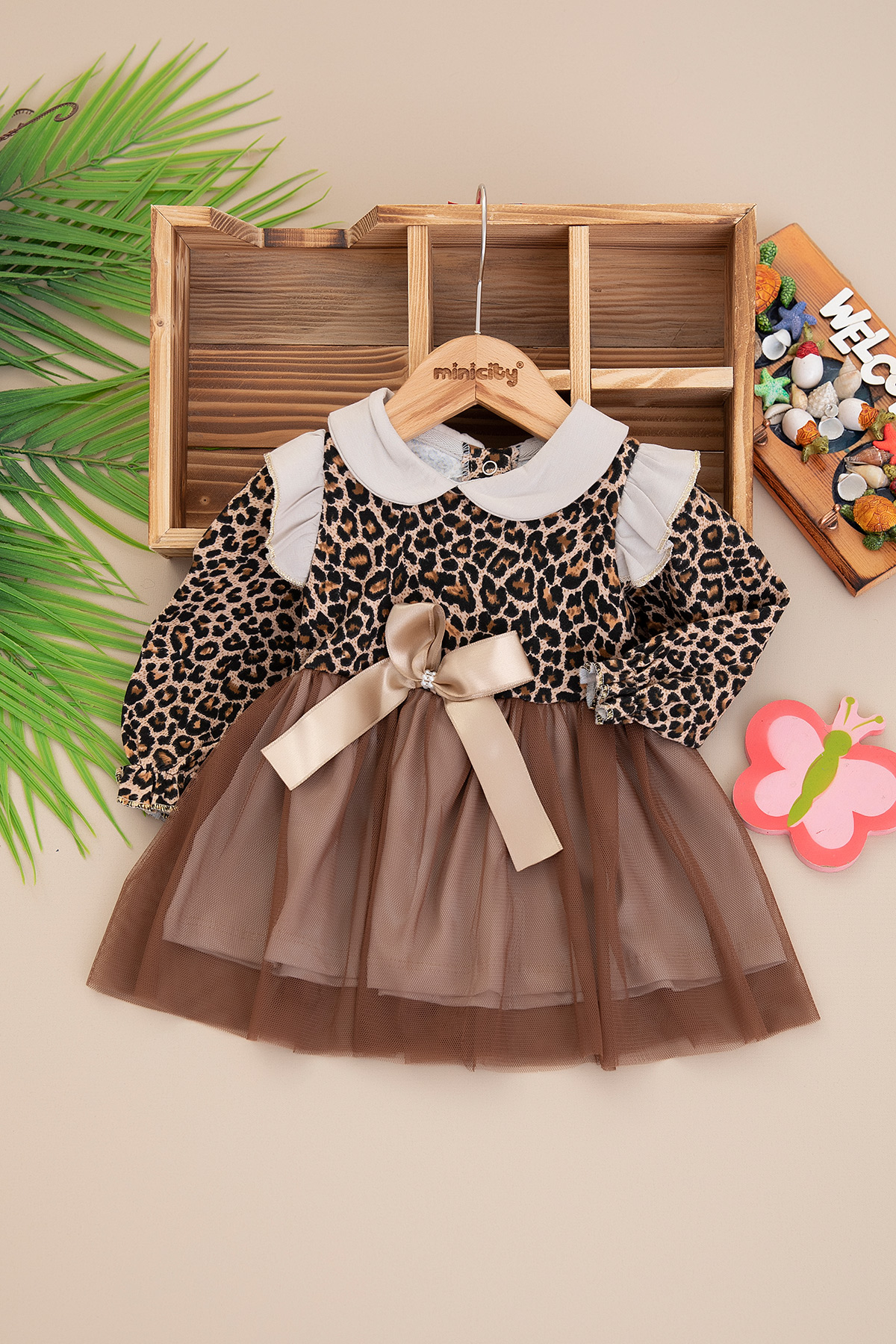 Kız Bebek Leopar Tül Etekli Elbise - 4253 (6-18 Ay)