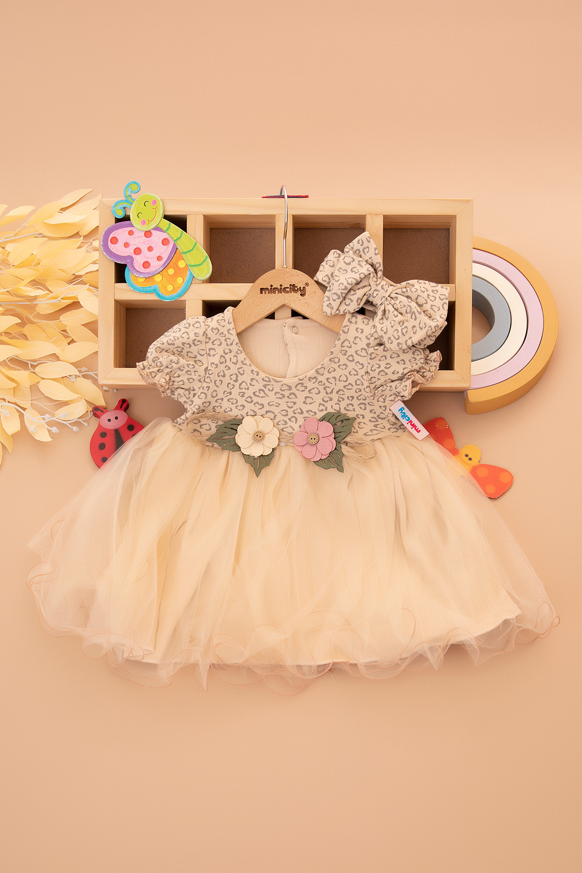 Kız Bebek Leopar Tüllü Elbise - 1491 (9-24 Ay)