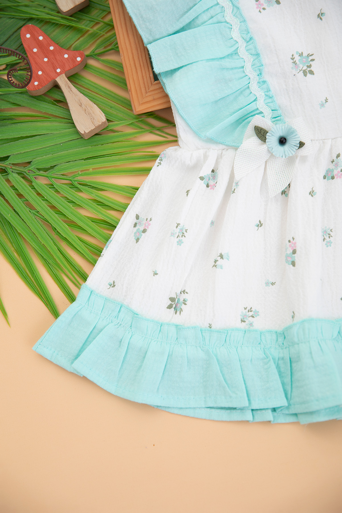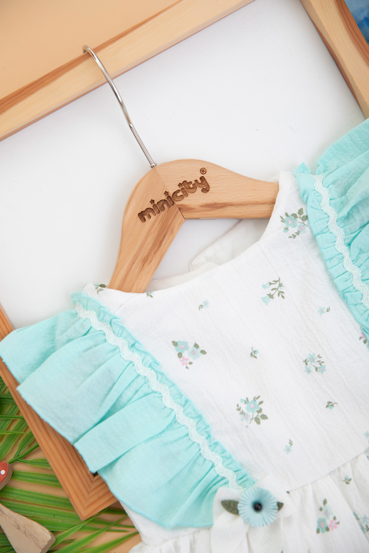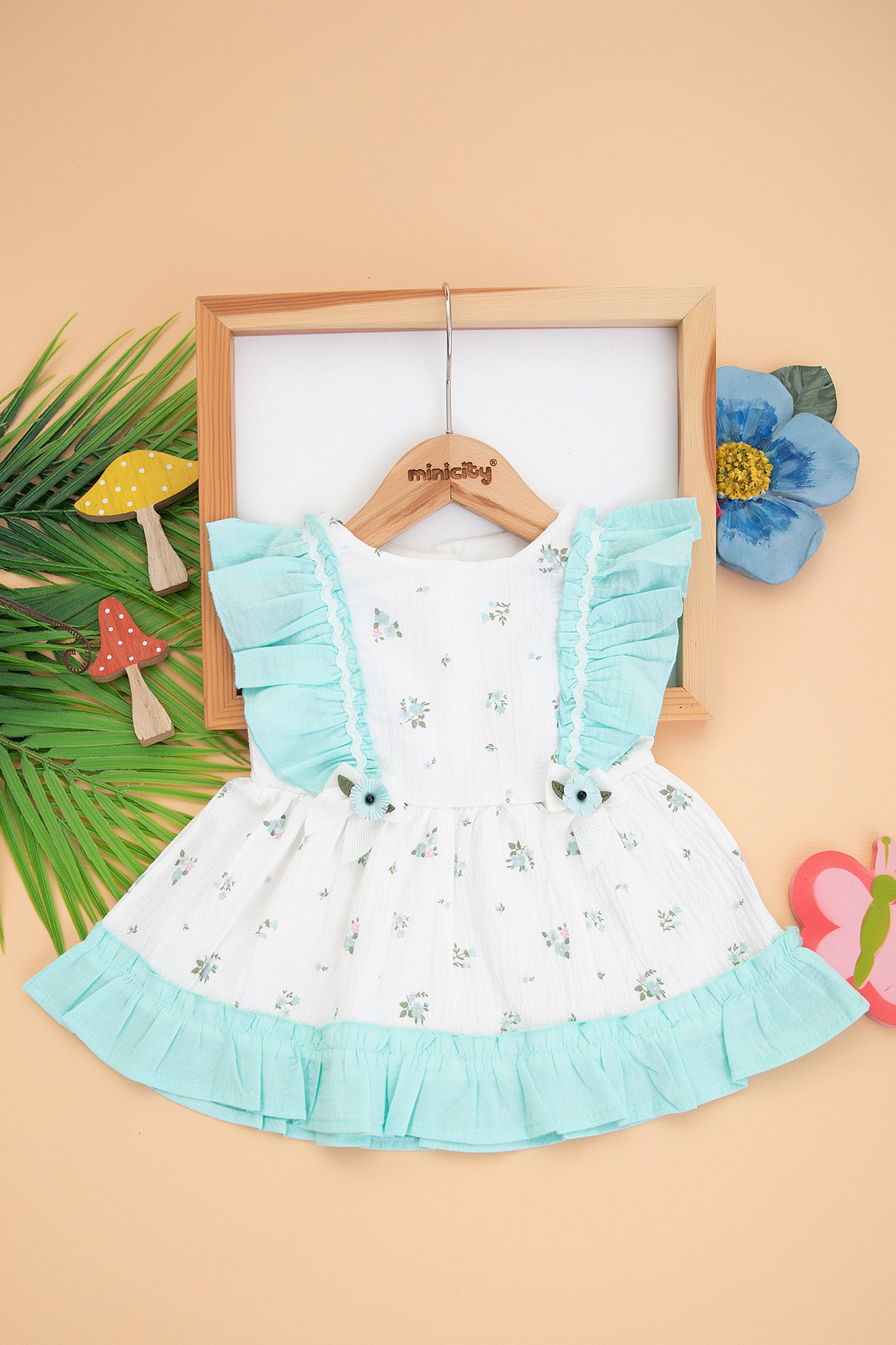 Kız Bebek Linen Baskılı Elbise - 3076 (9-24 Ay)