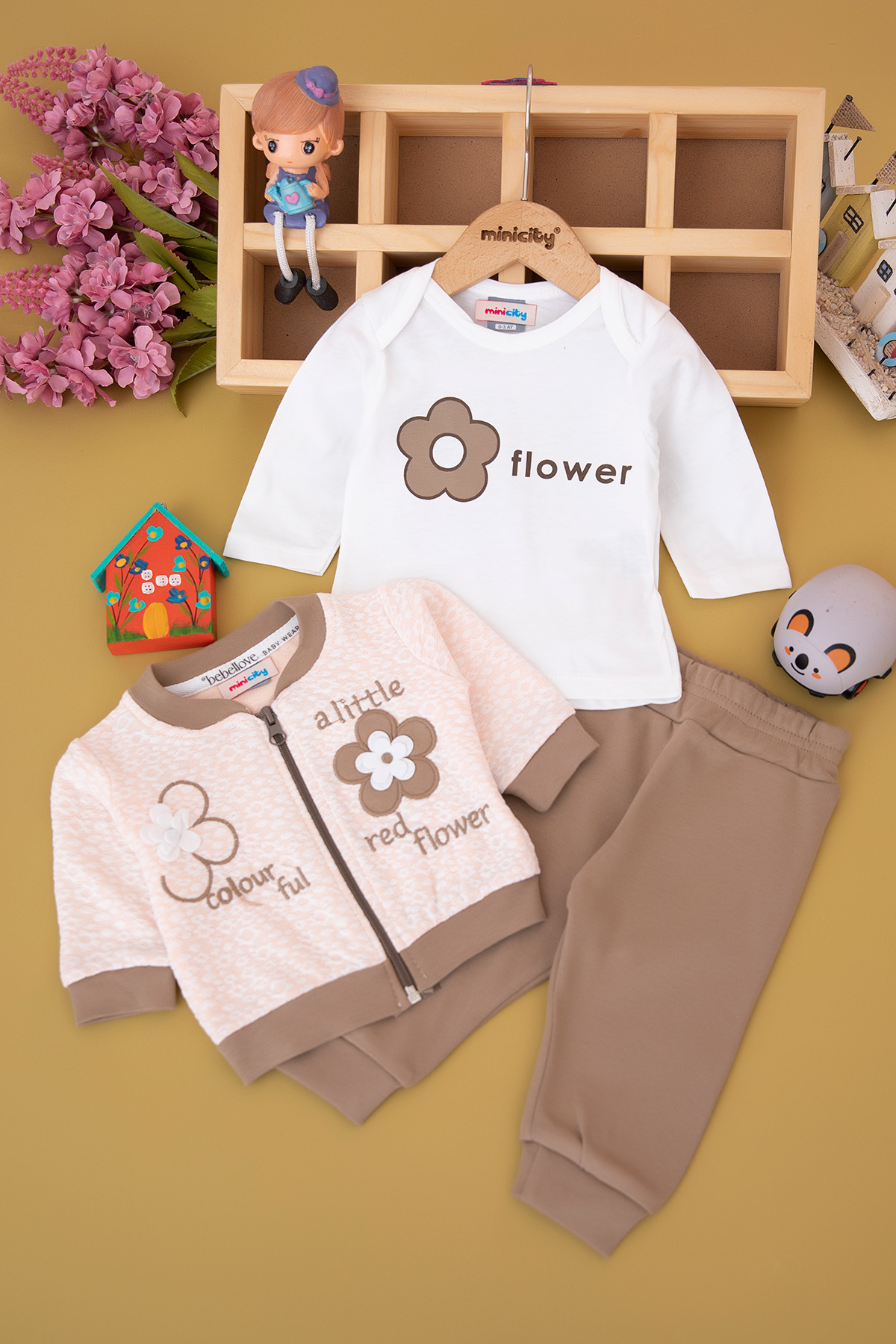 Kız Bebek Littel Çiçek Nakışlı Hırkalı Takım - 14164 (0-12 Ay)