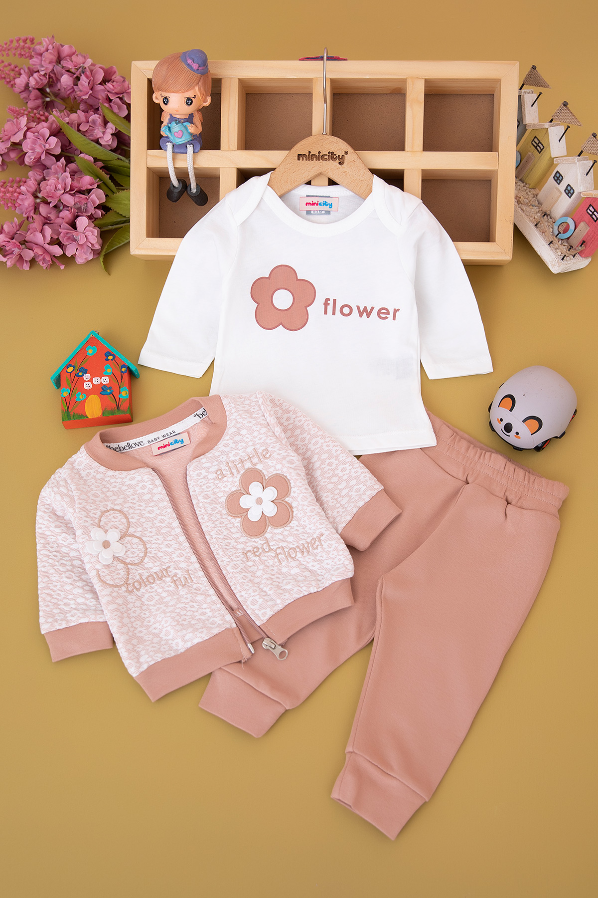 Kız Bebek Littel Çiçek Nakışlı Hırkalı Takım - 14164 (0-12 Ay)