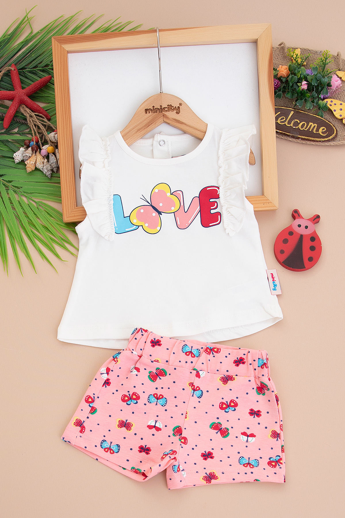 Kız Bebek Love Baskılı Şortlu Takım - 24365 (9-24 Ay)