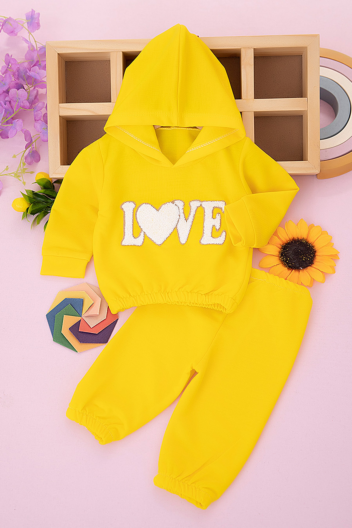 Kız Bebek Love Nakışlı Lastikli Kapşonlu Takım (9-24 Ay)
