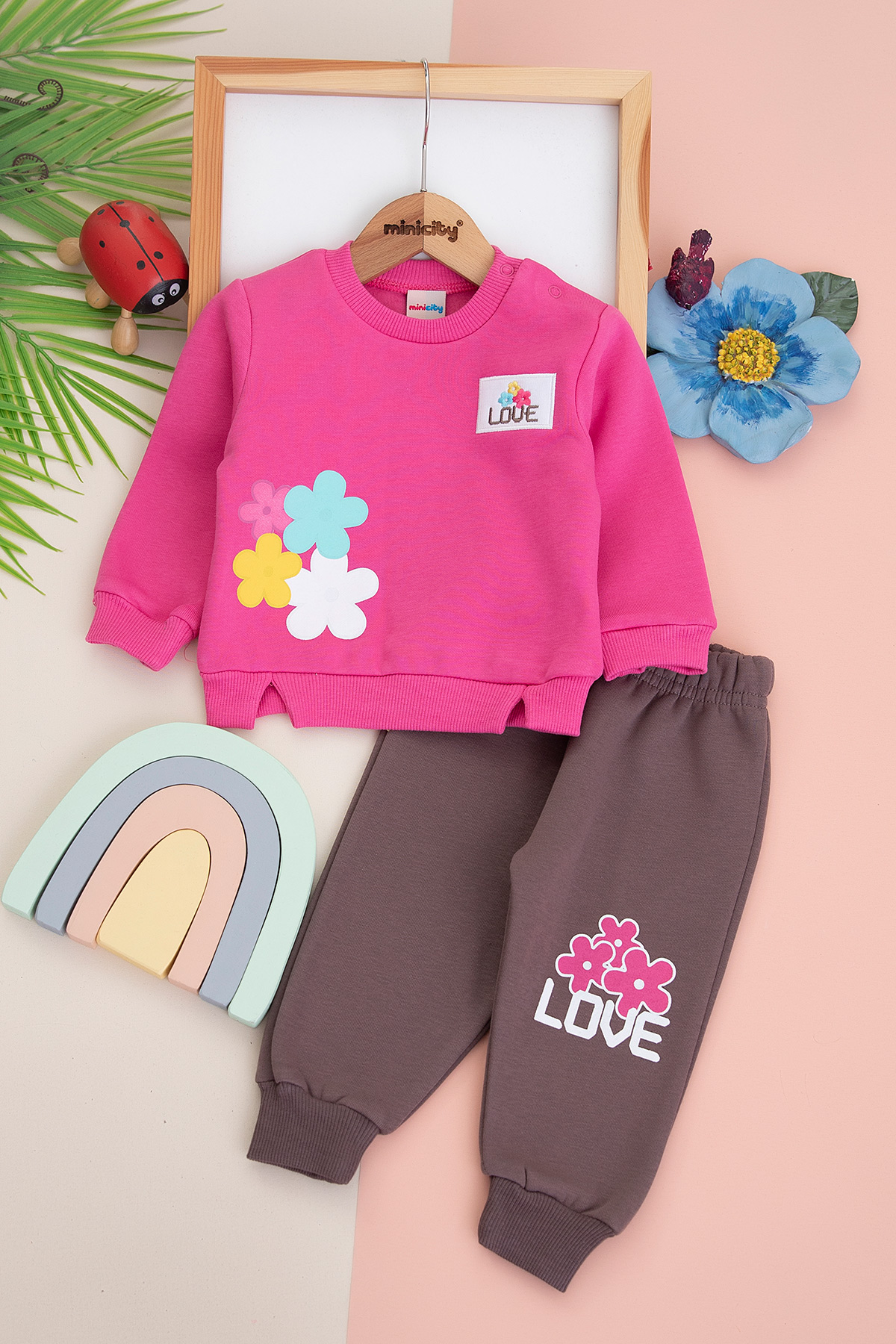 Kız Bebek Love Nakışlı Üçip Takım - 23753 (9-24 Ay)