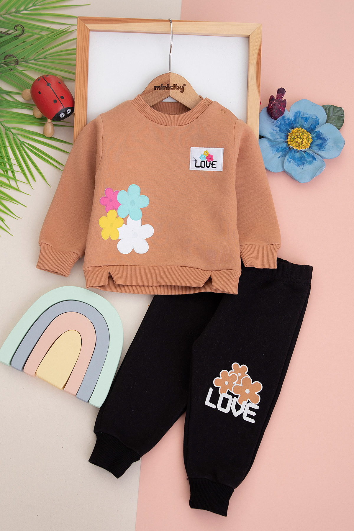 Kız Bebek Love Nakışlı Üçip Takım - 23753 (9-24 Ay)