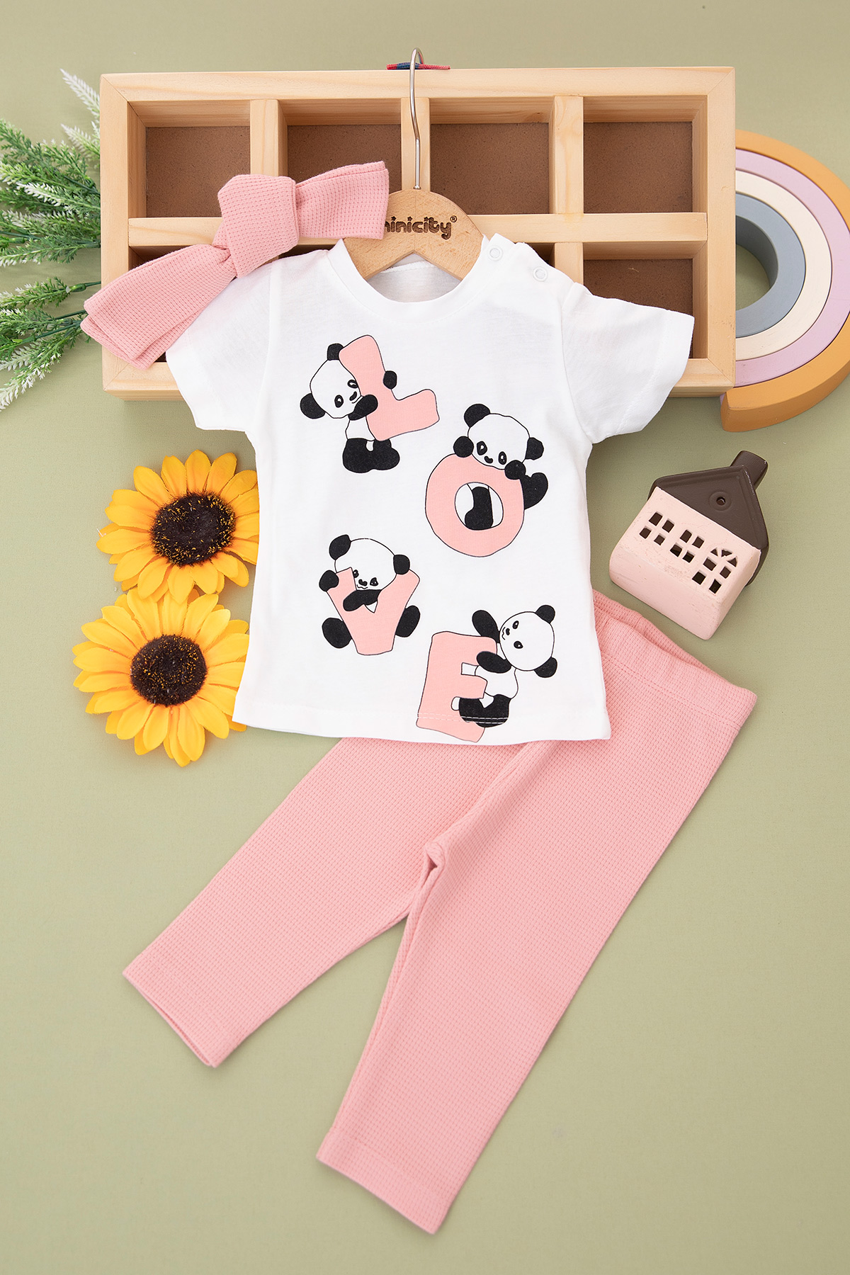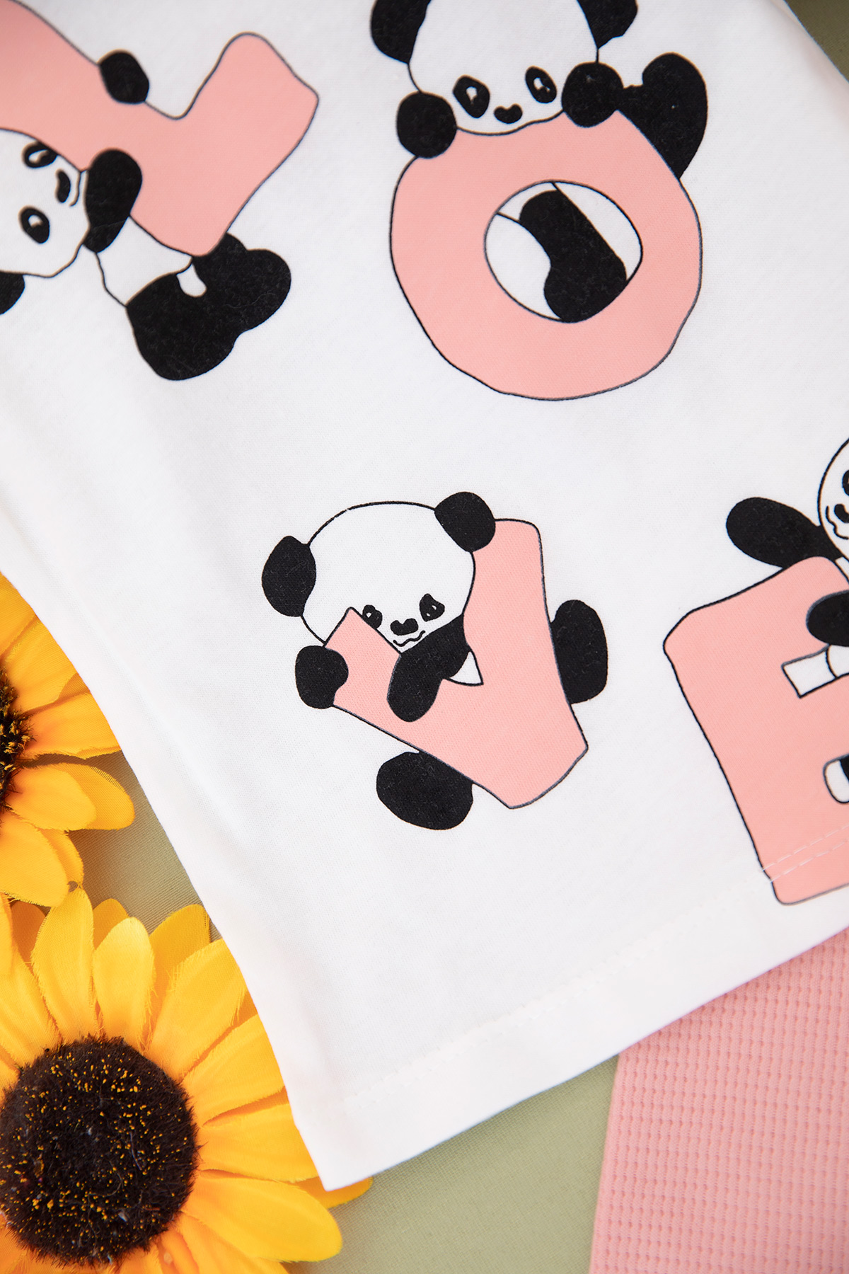 Kız Bebek Love Panda Baskılı Şortlu Takım - 2035 (6-24 Ay)