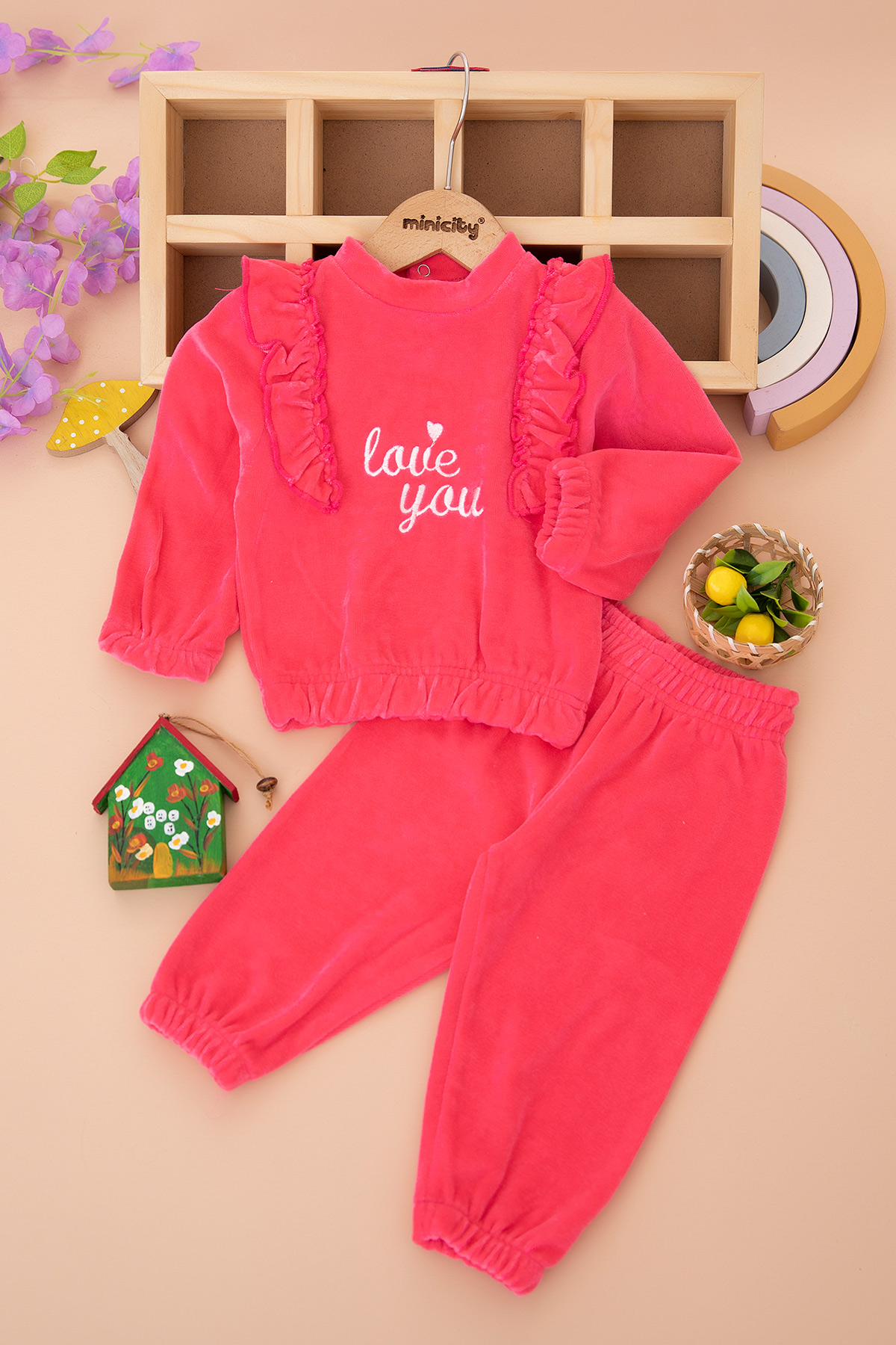 Kız Bebek Love You Nakışlı Üçip Takım - 24838 (9-24 Ay)