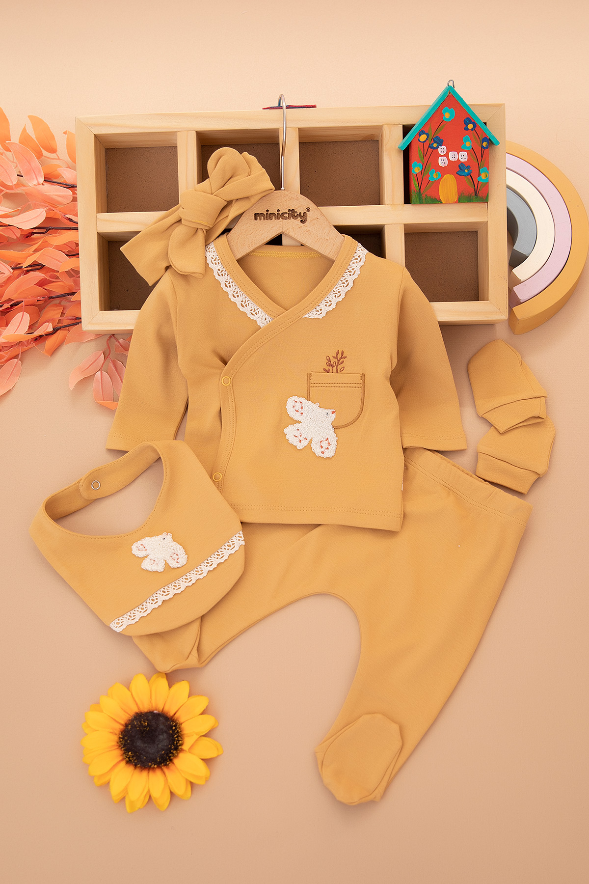 Kız Bebek Martı Nakışlı 5`Li Zıbın Seti - 52721 (0-3 Ay)