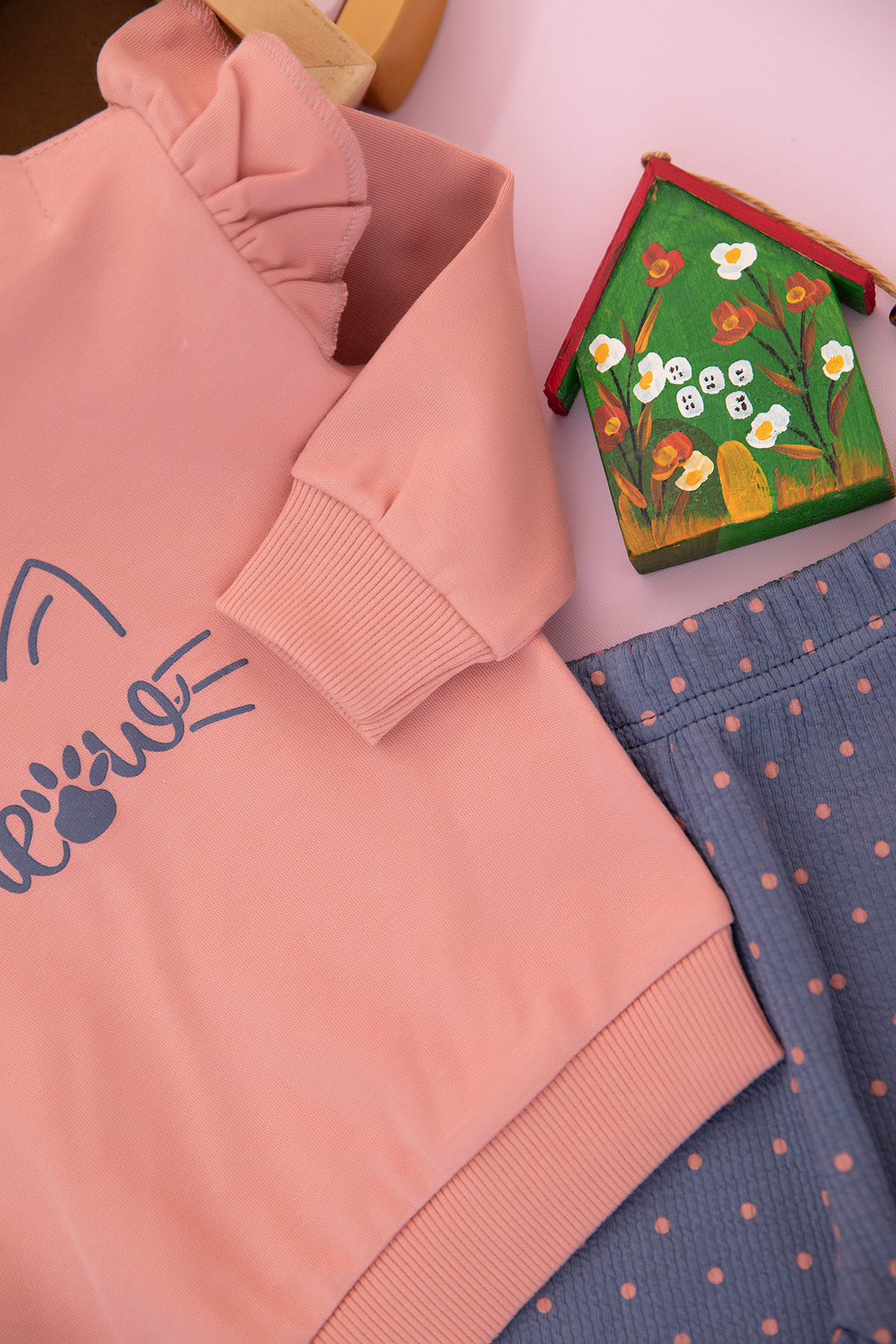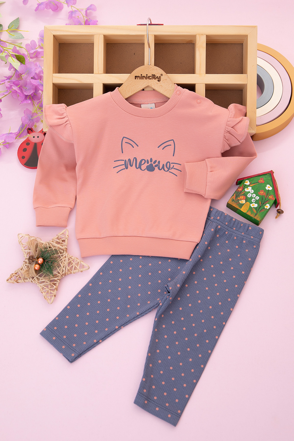 Kız Bebek Meow Baskılı Takım - 25095 (9-24 Ay)
