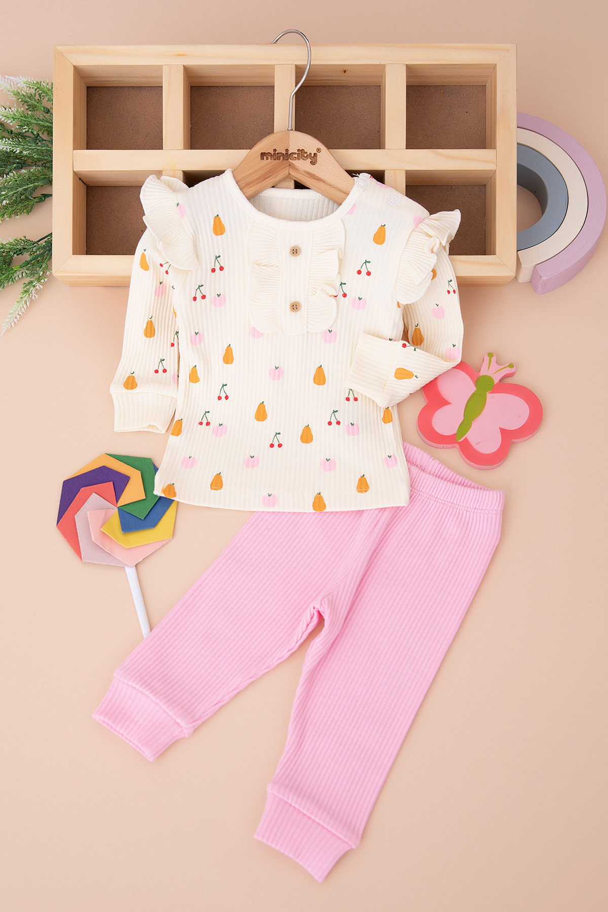 Kız Bebek Meyveler Baskılı Fırfırlı Takım - 1165 (3-12 Ay)