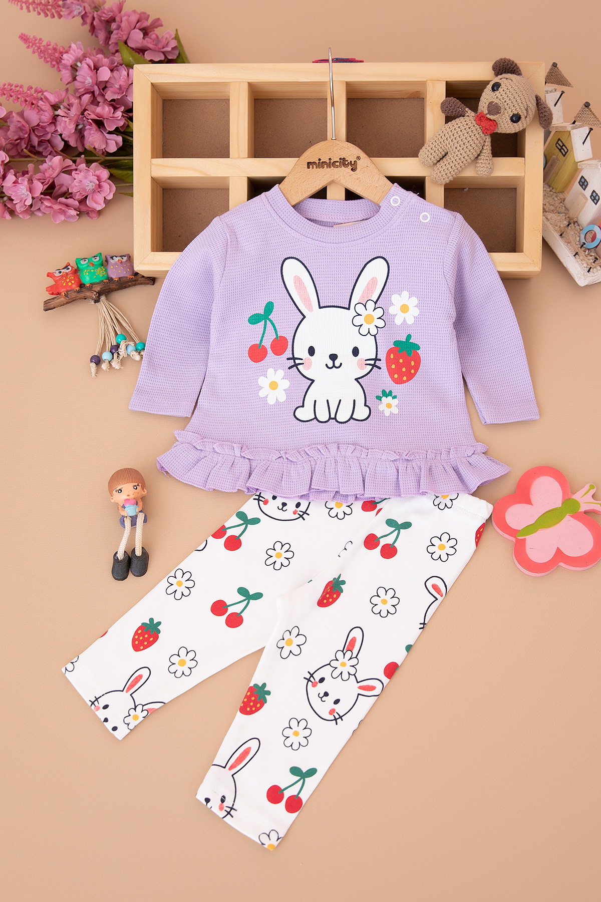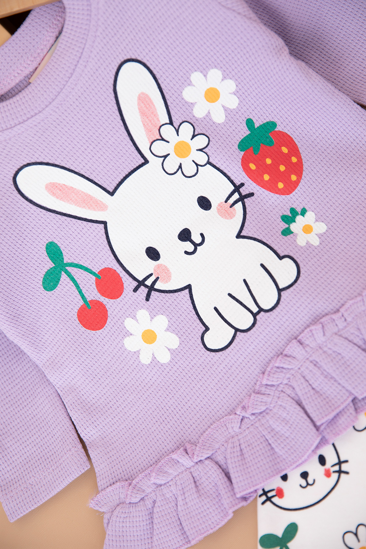 Kız Bebek Meyveler Tavşan Baskılı Takım - 1012 (6-18 Ay)