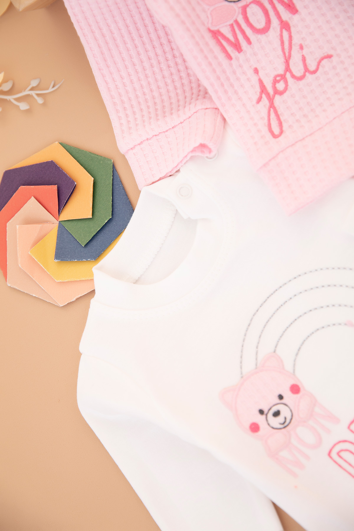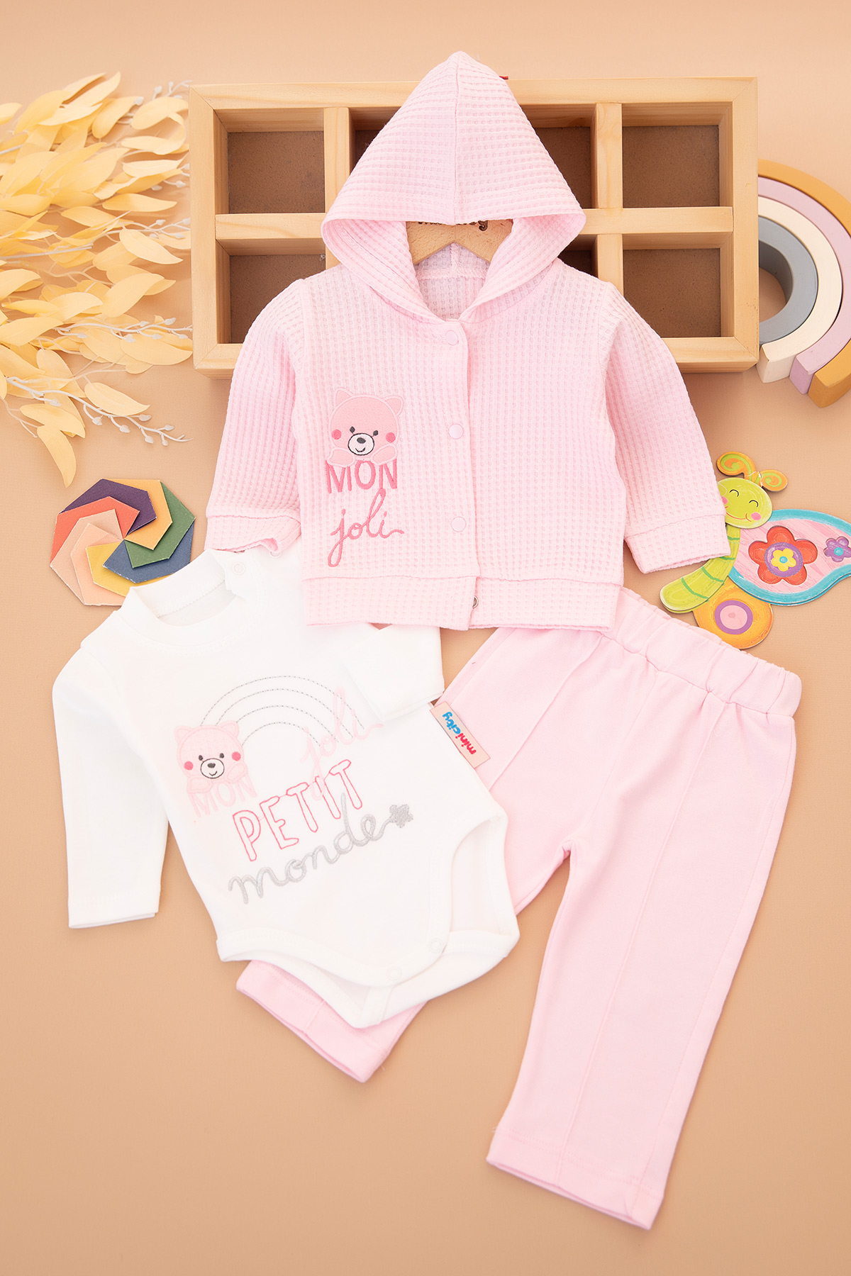 Kız Bebek Mon Joli Nakışlı Üçlü Takım - 7094 (3-18 Ay)