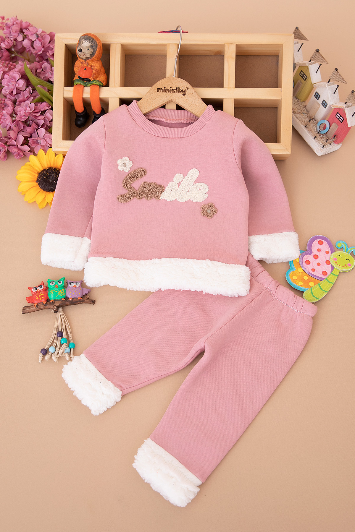 Kız Bebek Nakışlı Peluşlu Üçip Takım (6-24 Ay)