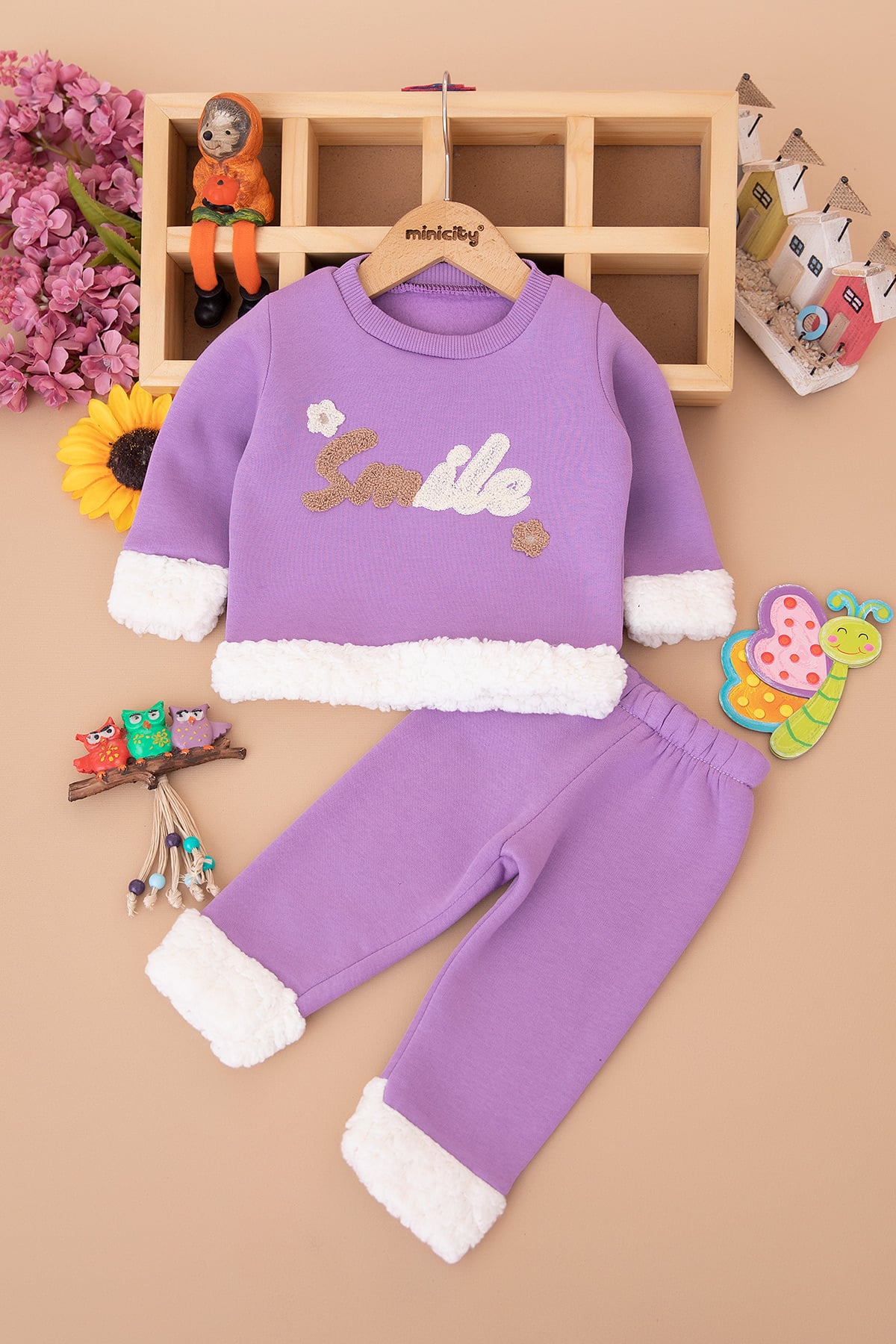 Kız Bebek Nakışlı Peluşlu Üçip Takım (6-24 Ay)