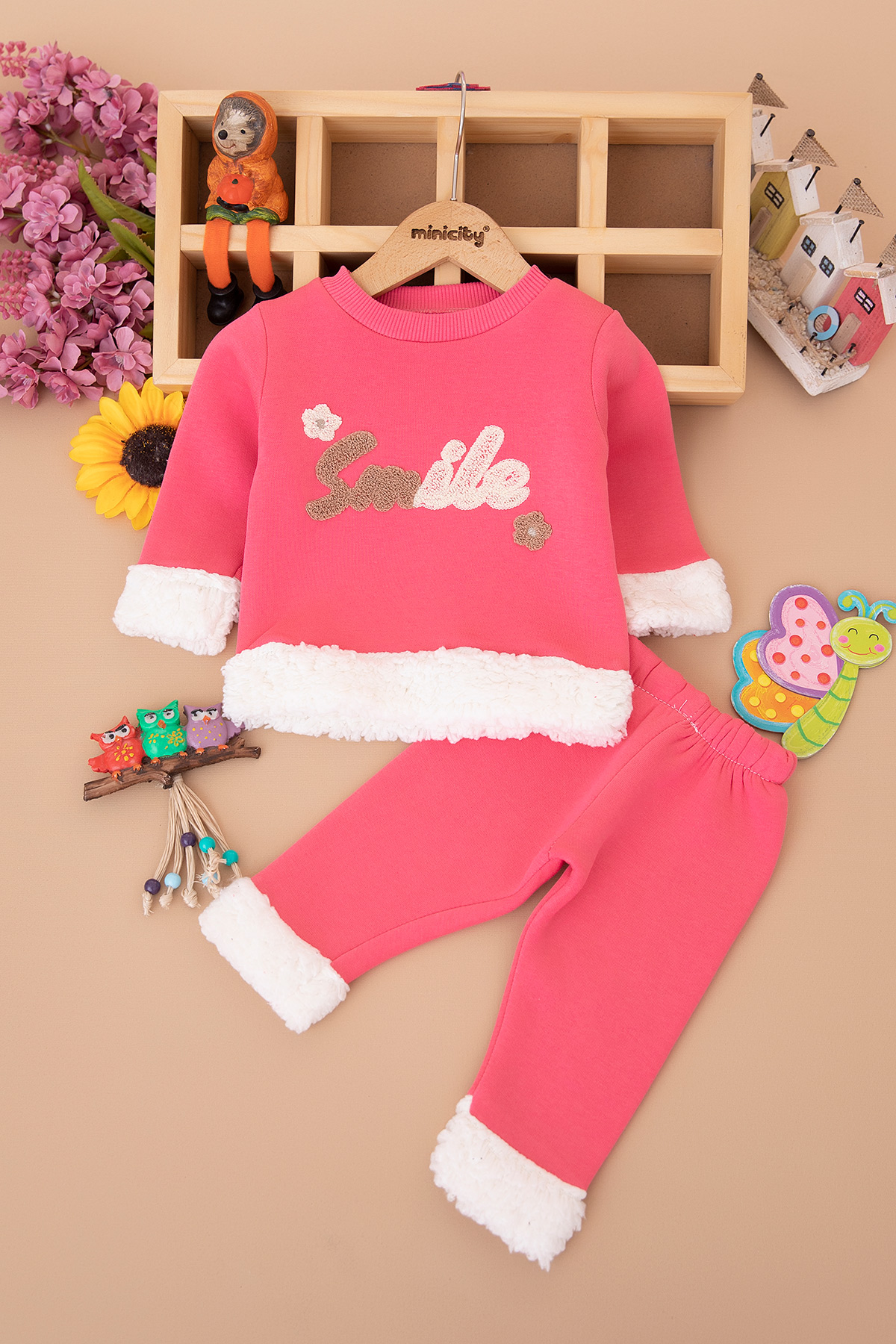 Kız Bebek Nakışlı Peluşlu Üçip Takım (6-24 Ay)
