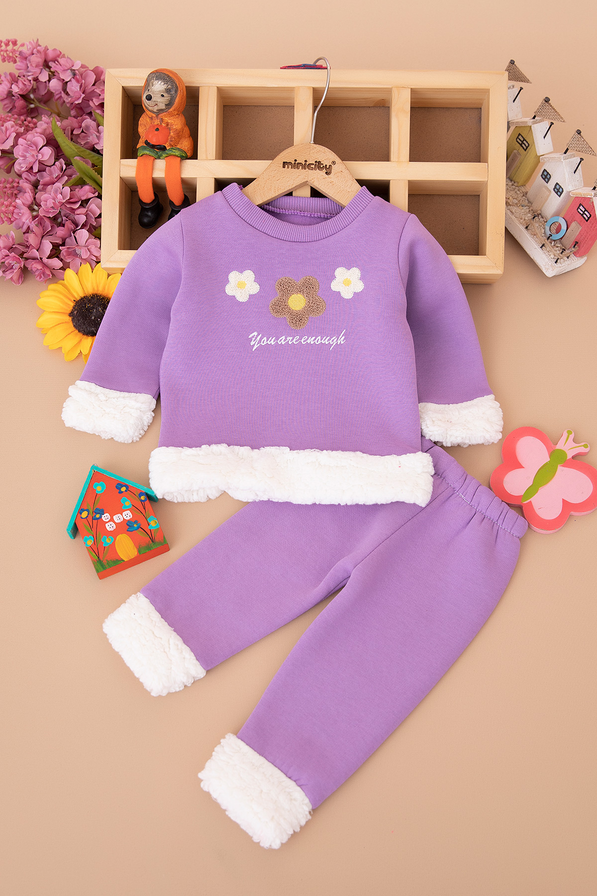 Kız Bebek Nakışlı Peluşlu Üçip Takım (6-24 Ay)
