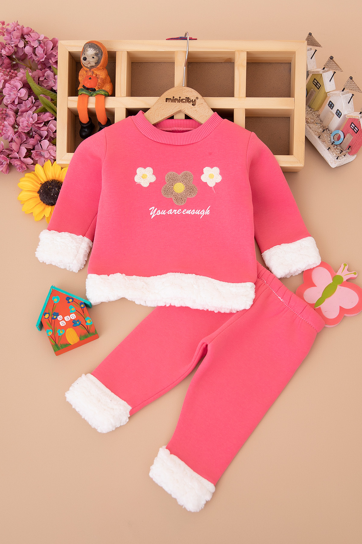 Kız Bebek Nakışlı Peluşlu Üçip Takım (6-24 Ay)