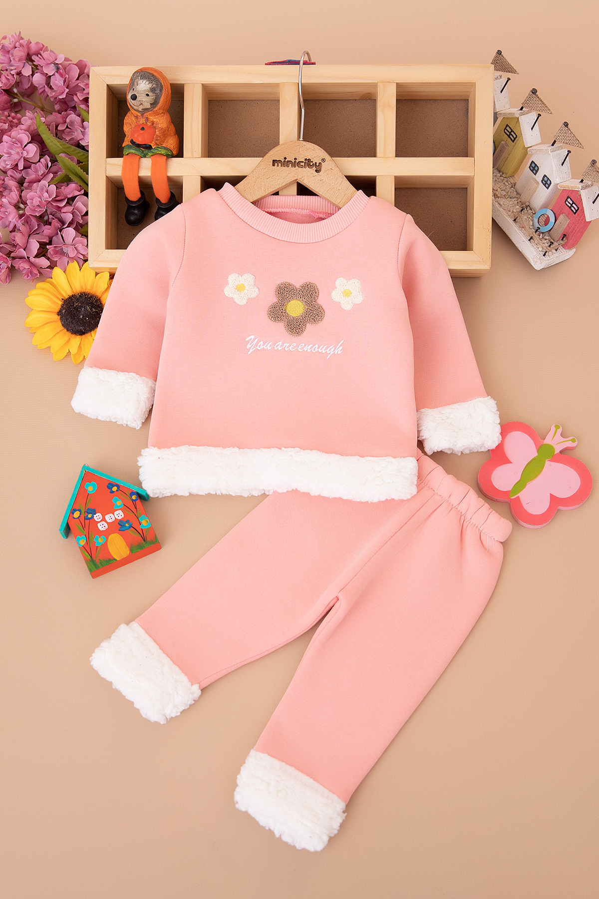 Kız Bebek Nakışlı Peluşlu Üçip Takım (6-24 Ay)