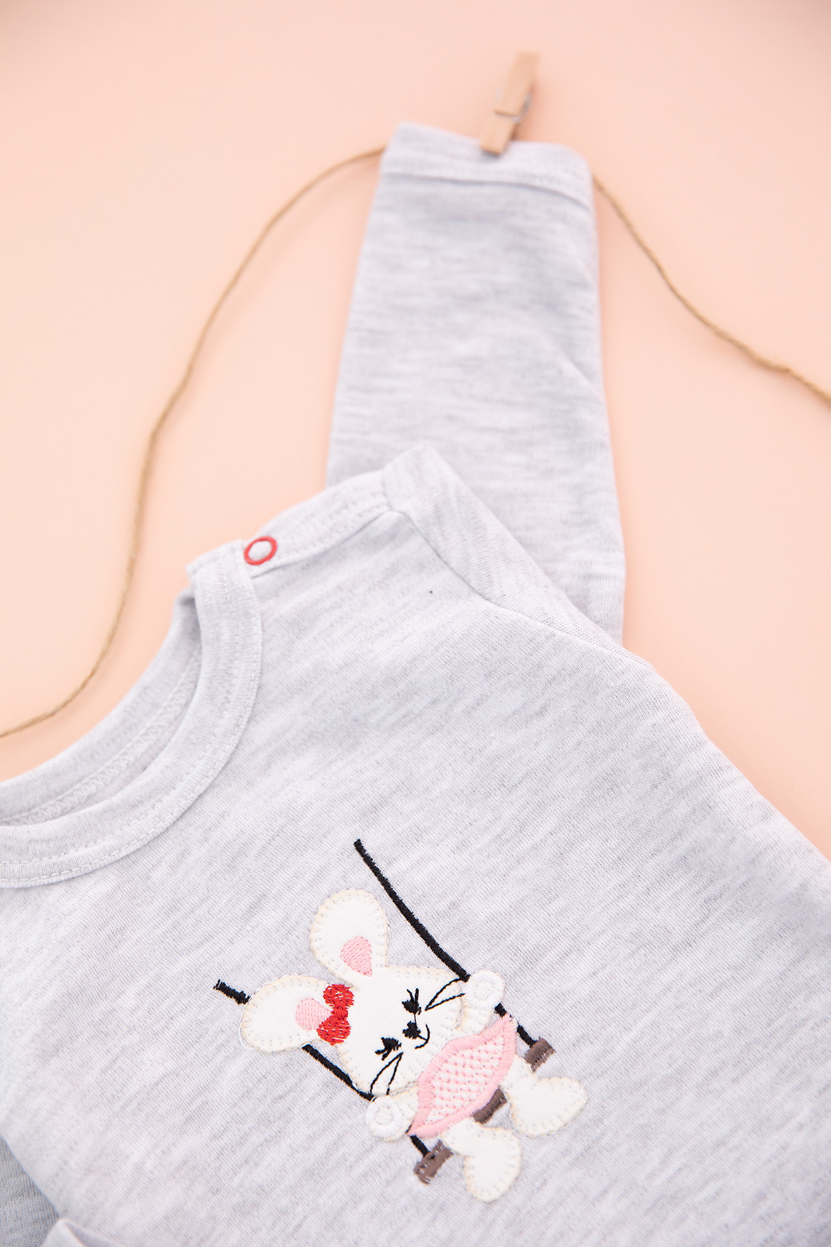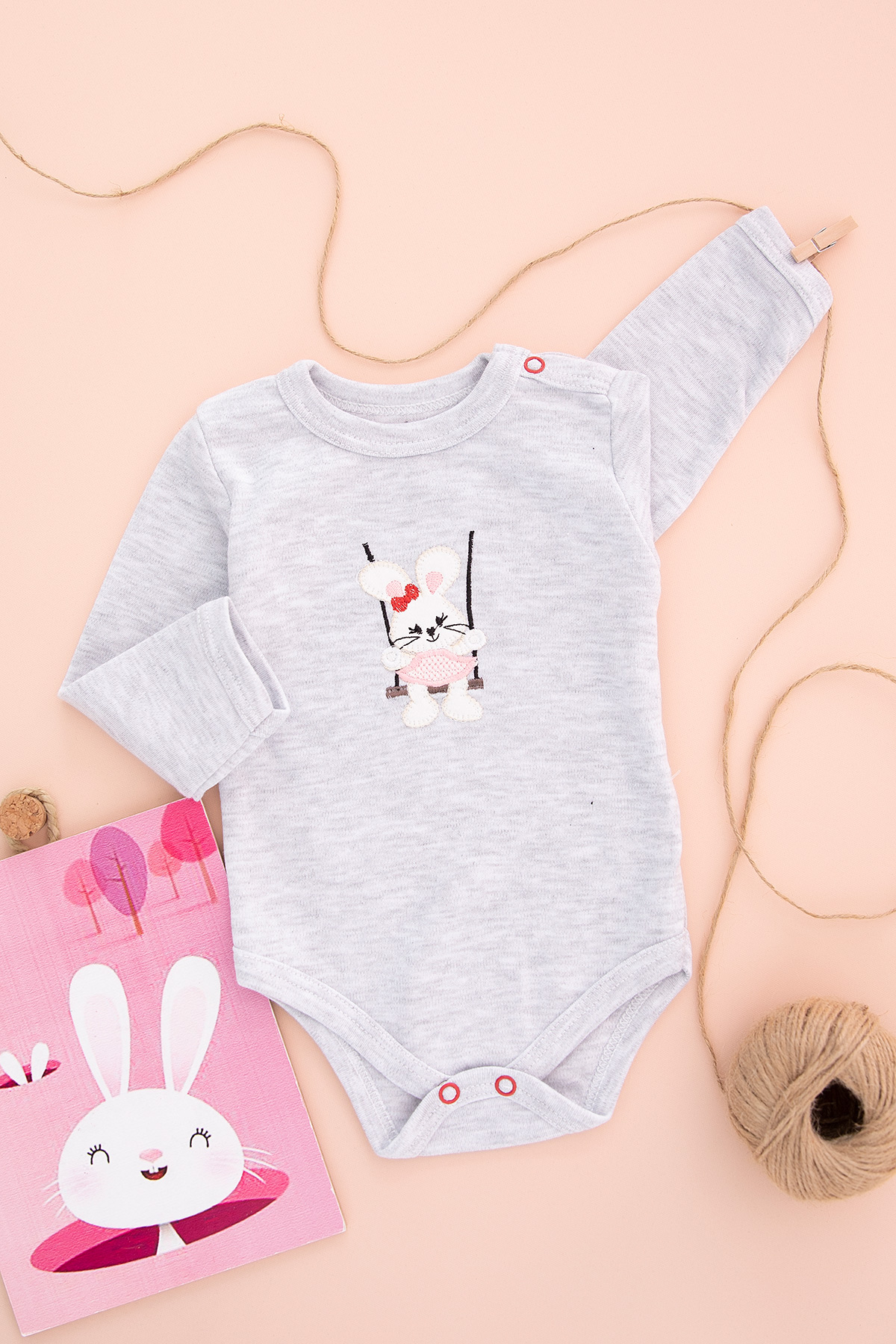 Kız Bebek Nakışlı Uzun Kol Çıtçıtlı Body - 3097