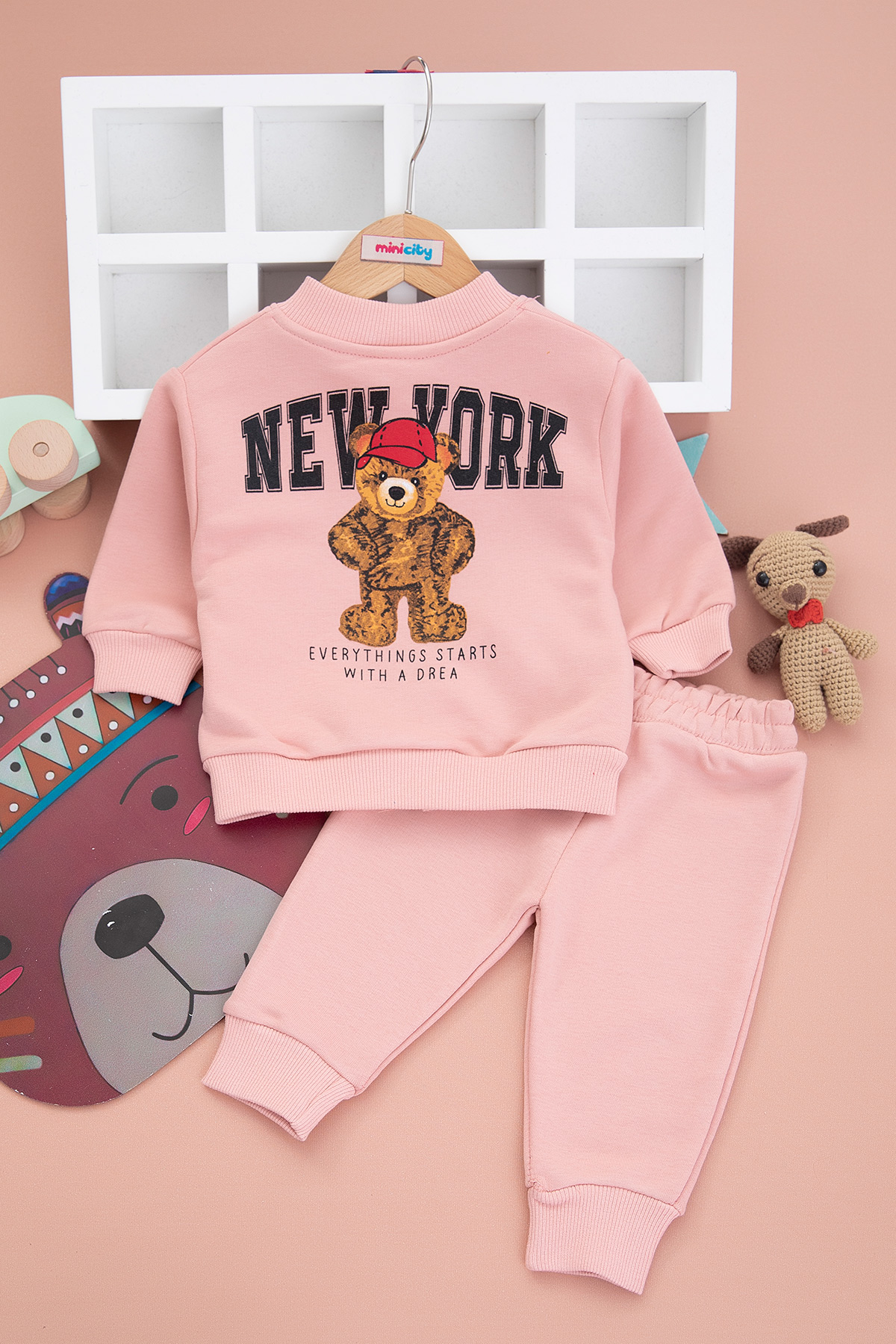 Kız Bebek New York Ayı Baskılı Takım - 3210 (6-24 Ay)