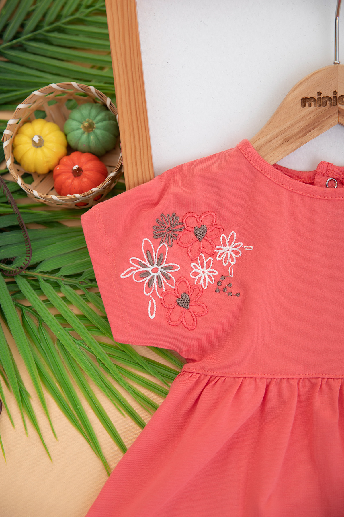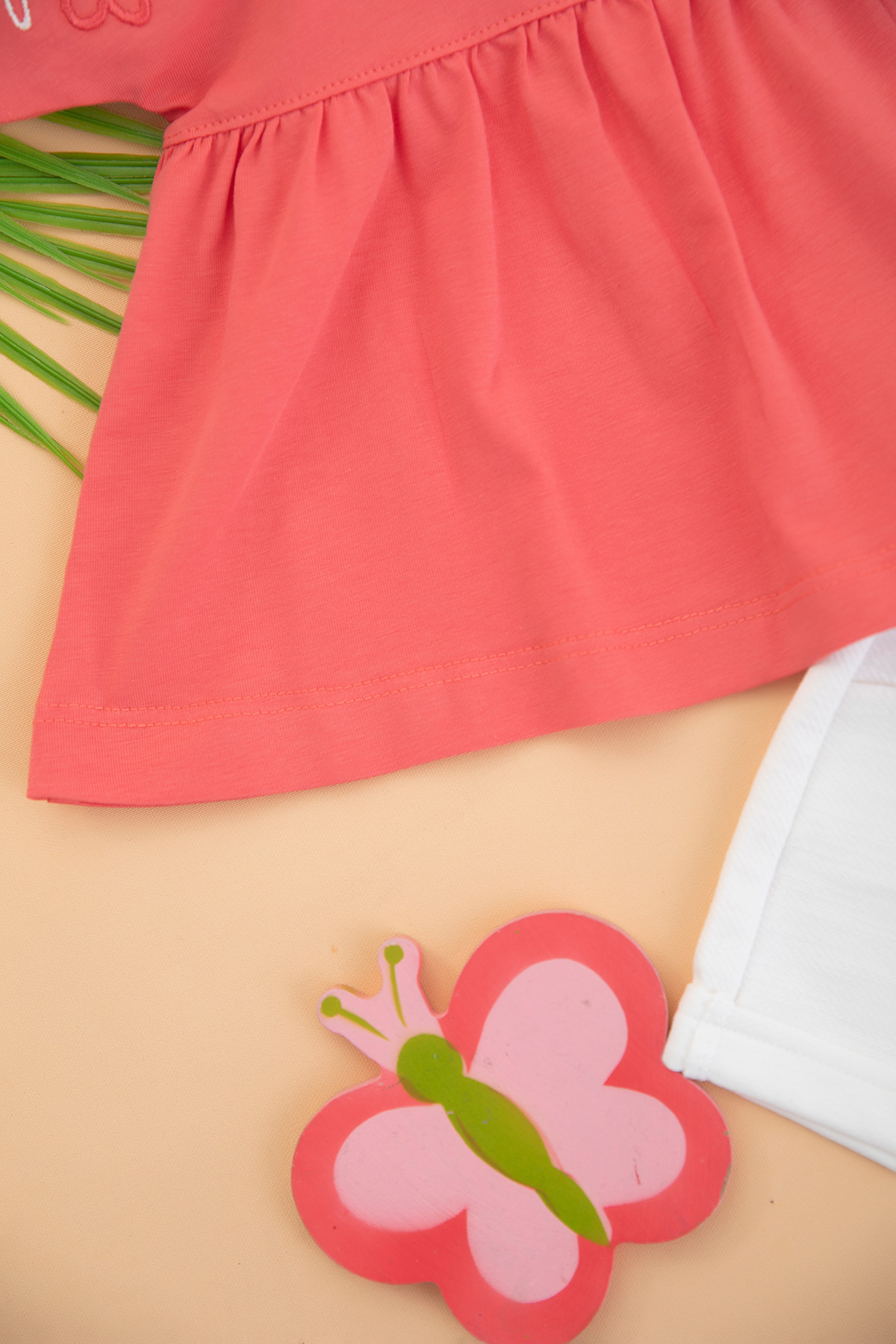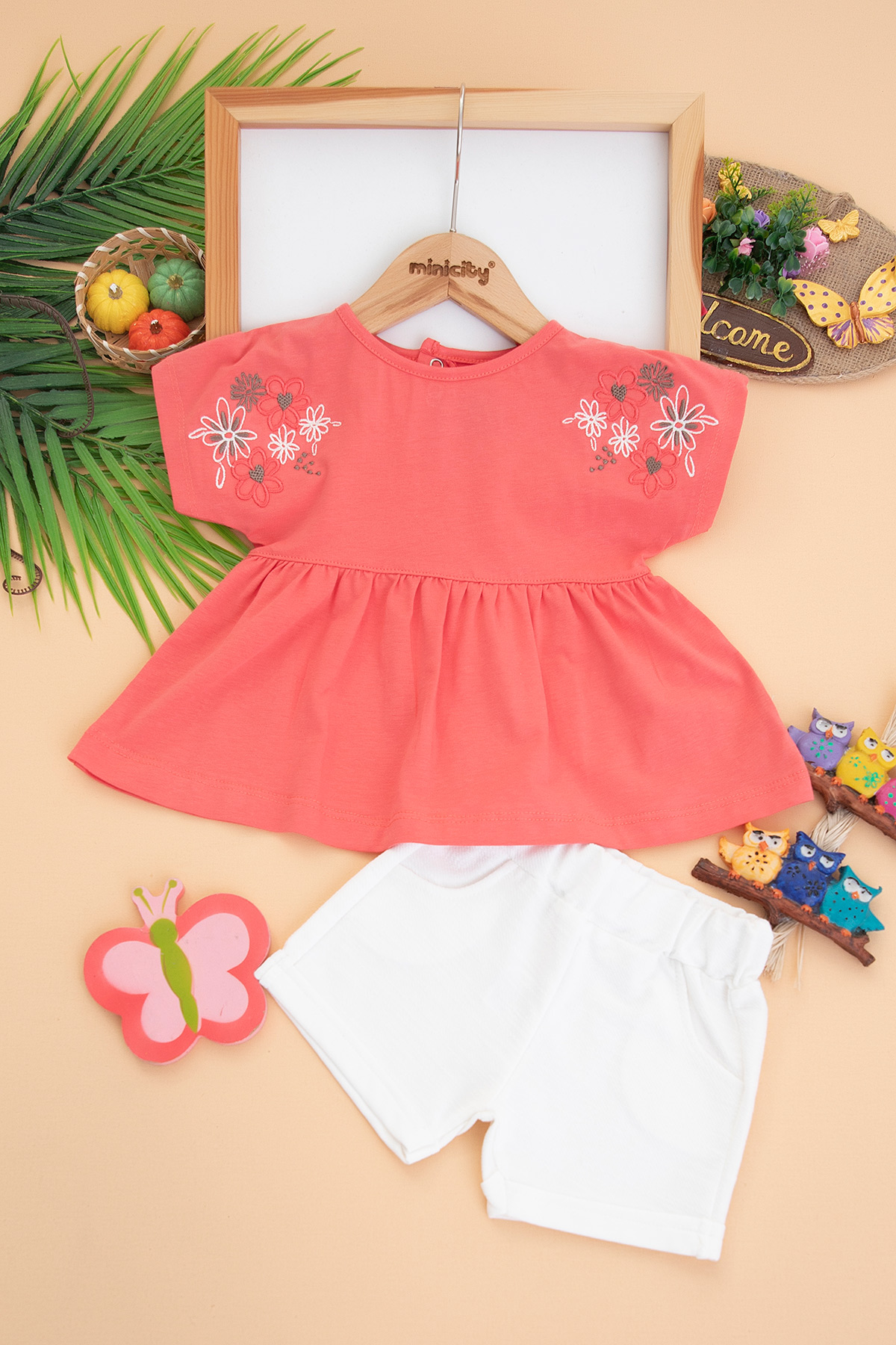 Kız Bebek Omuz Çiçek Nakışlı Şortlu Takım - 24230 (9-24 Ay)