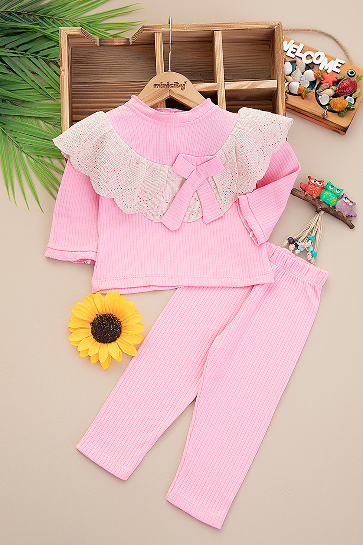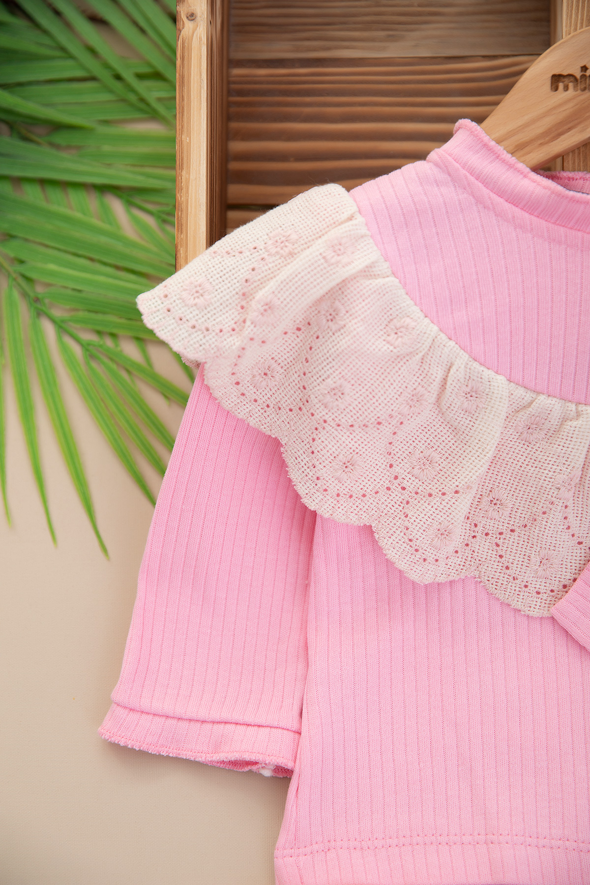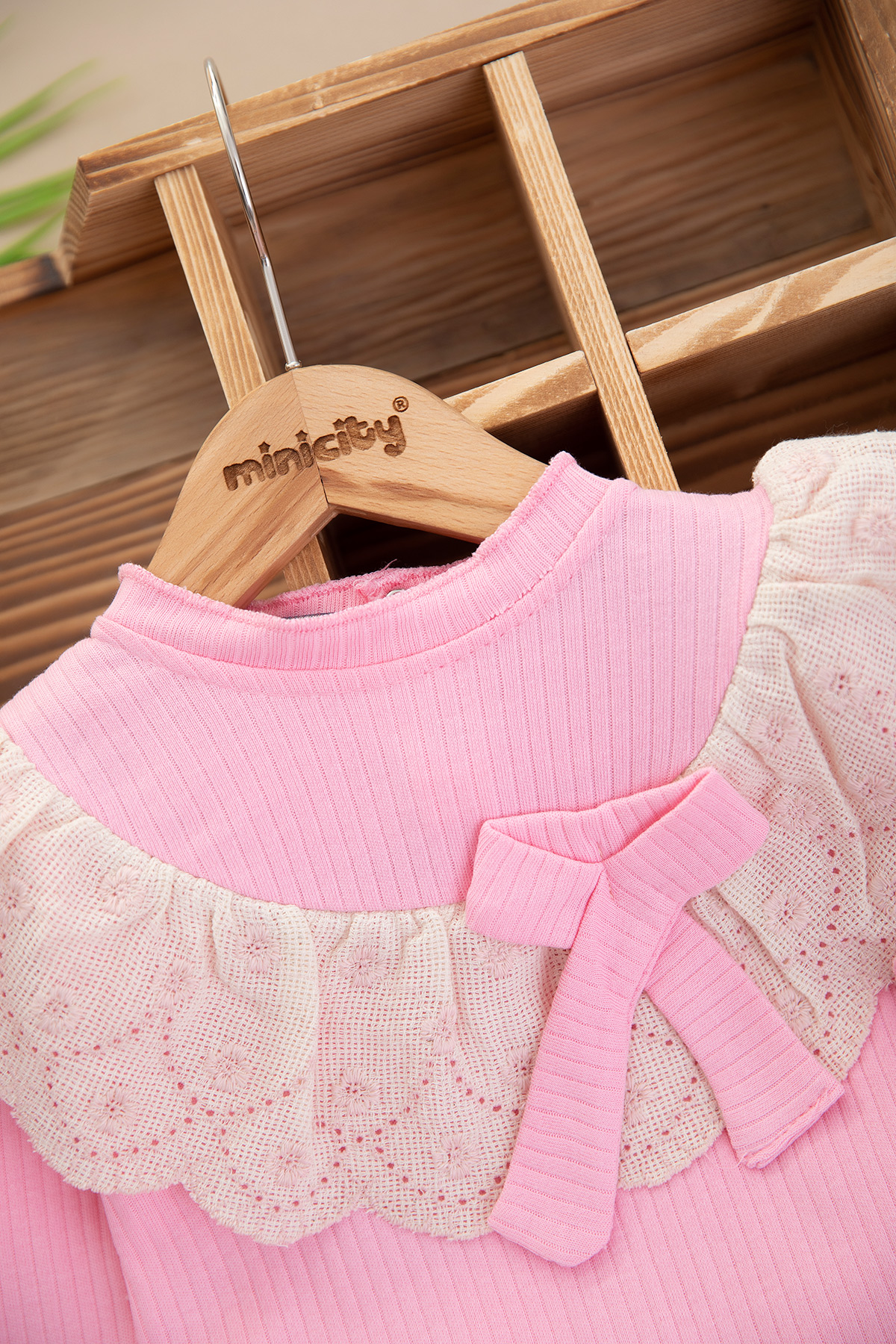 Kız Bebek Omuzdan Fırfırlı Fiyonklu Takım - 5005 (6-24 Ay)