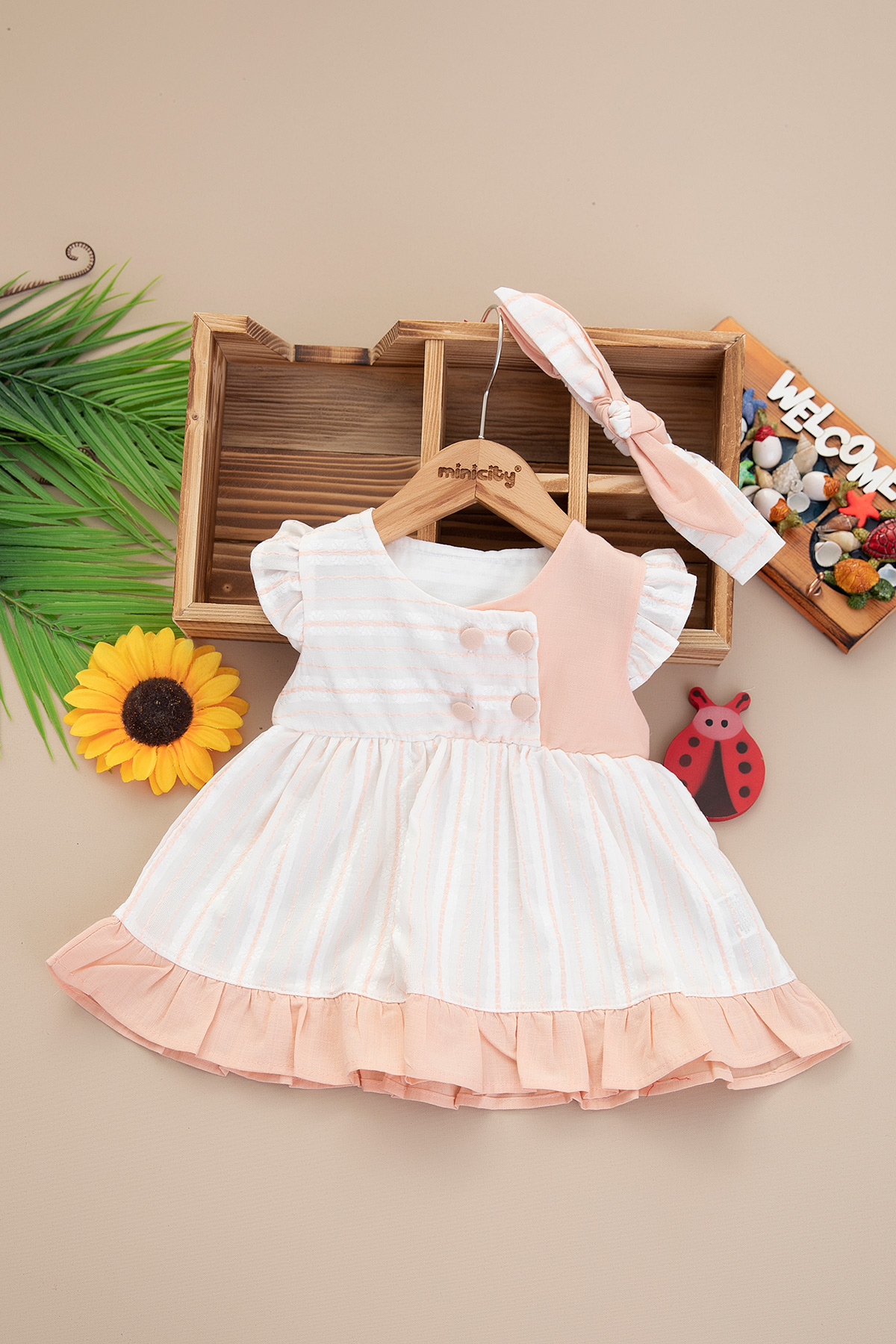 Kız Bebek Önden Düğmeli Bandanalı Elbise - 3164 (9-24 Ay)