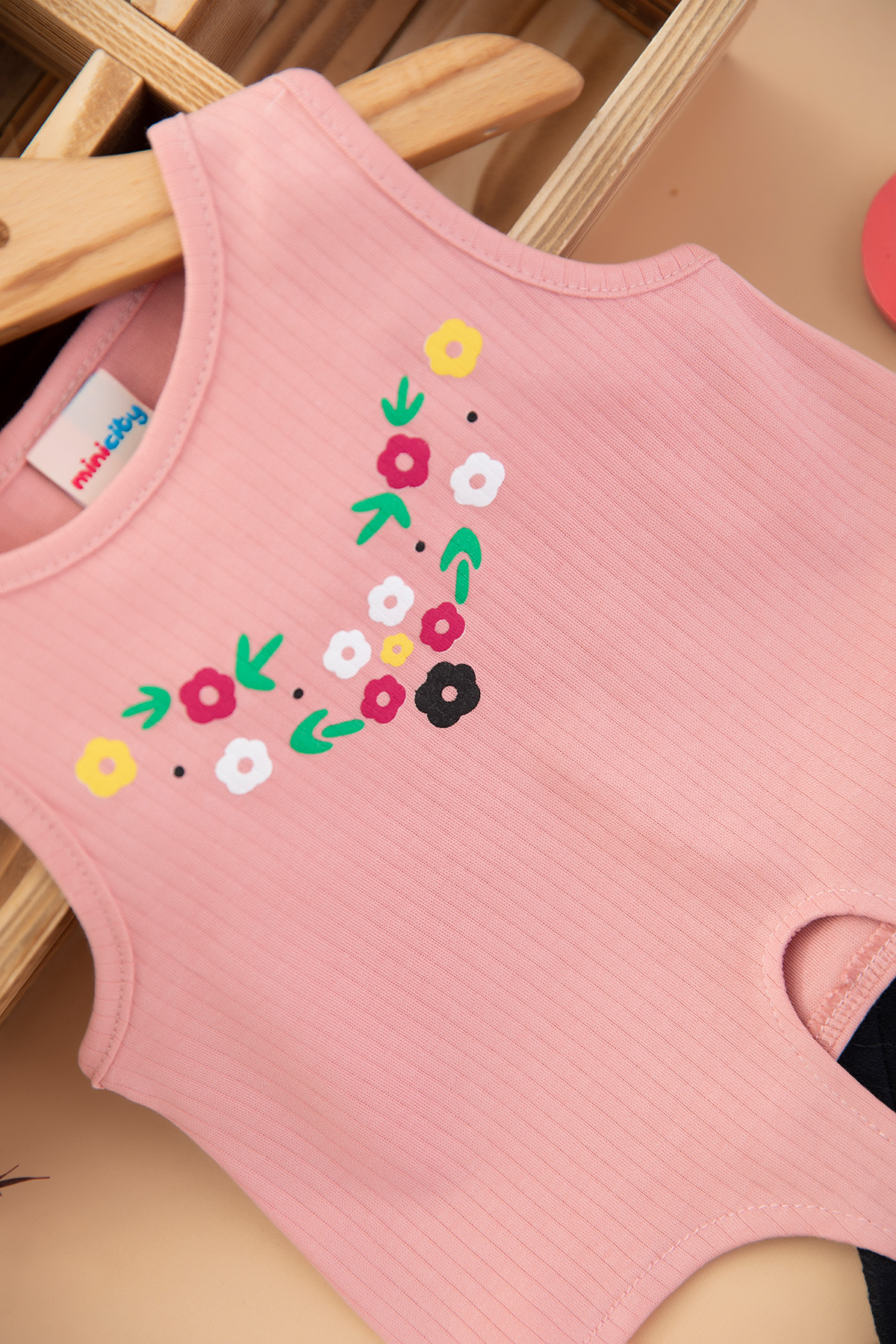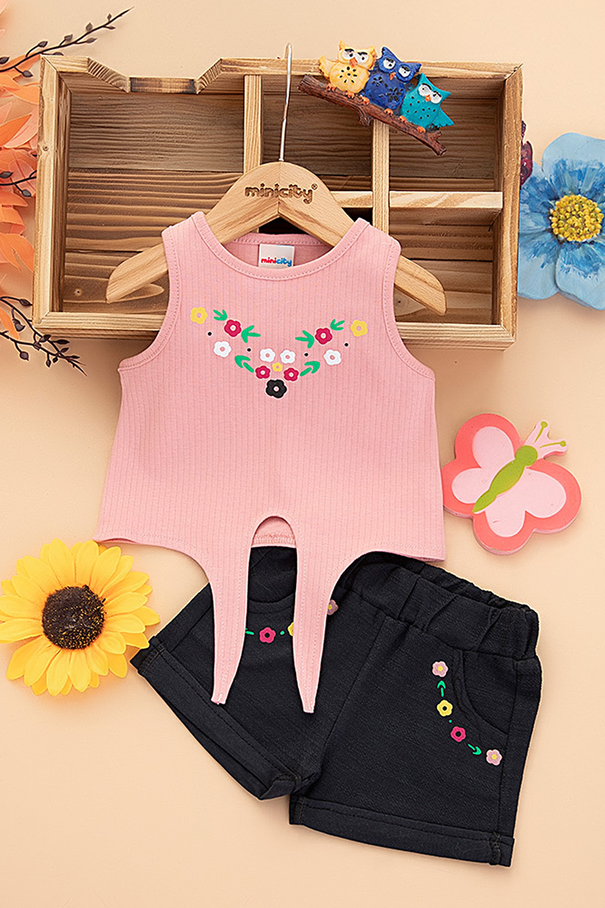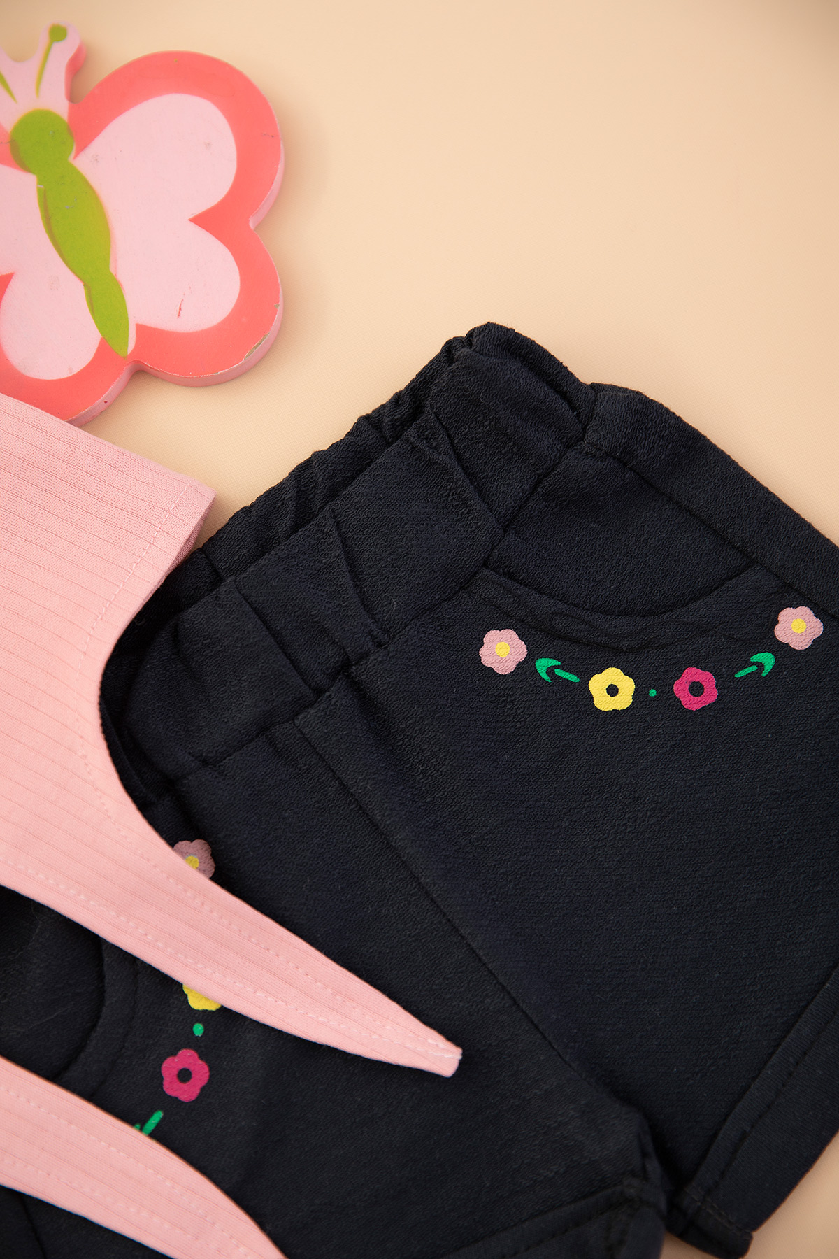 Kız Bebek Önü Bağlamalı Şortlu Takım - 25537 (9-24 Ay)