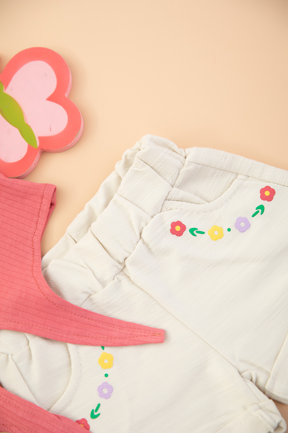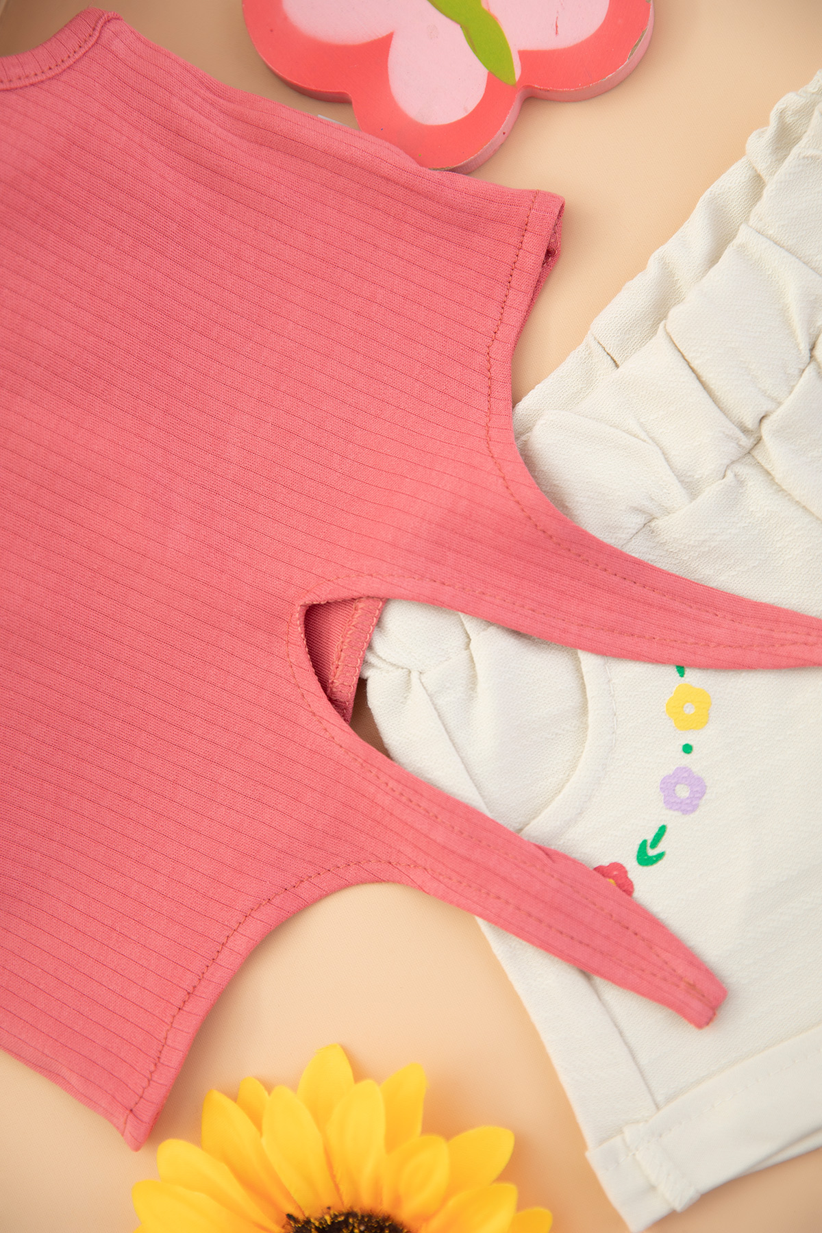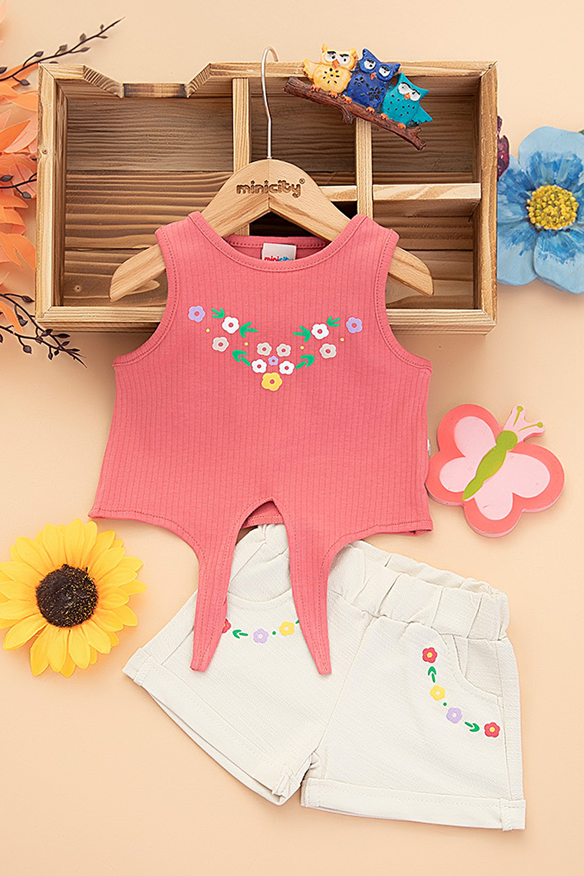 Kız Bebek Önü Bağlamalı Şortlu Takım - 25537 (9-24 Ay)