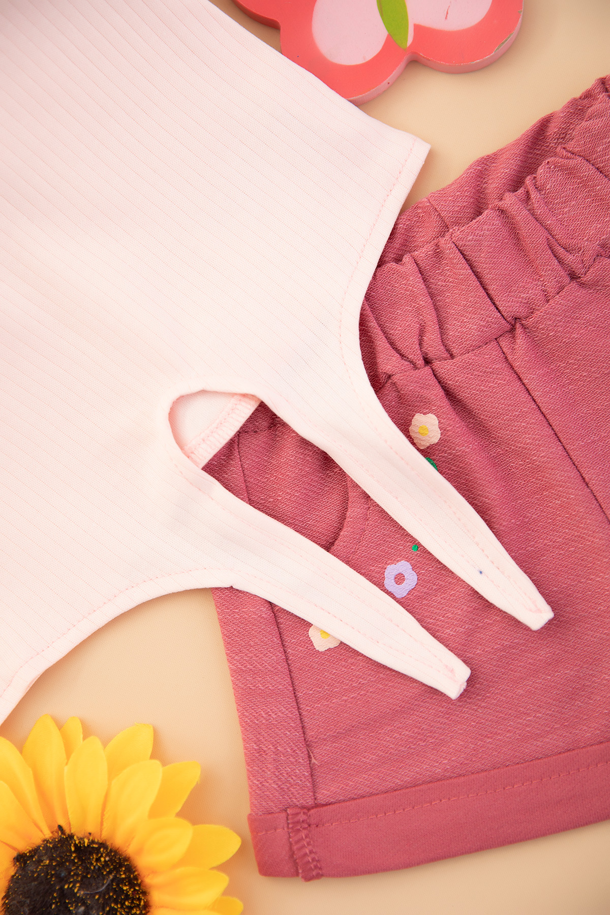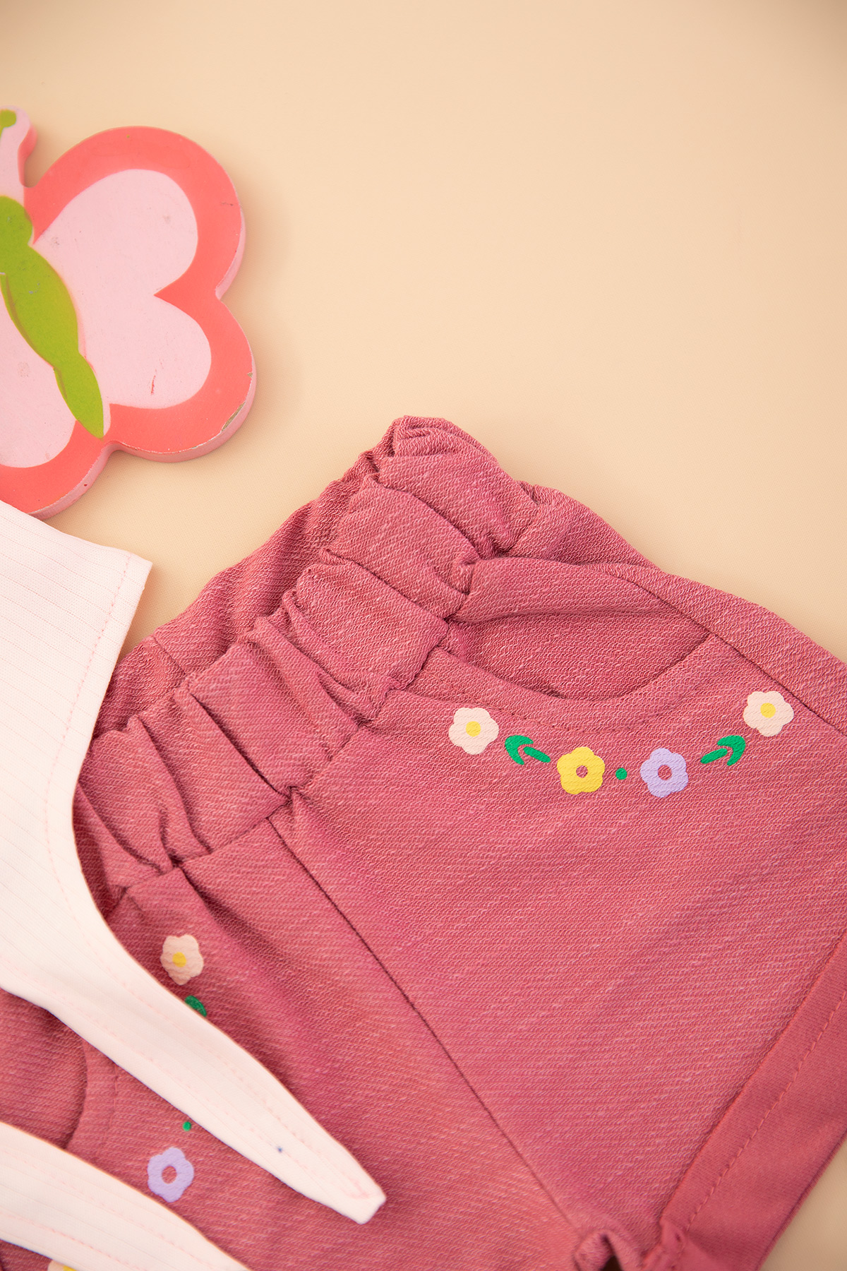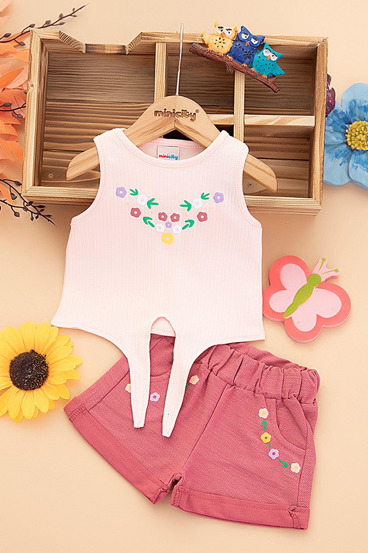 Kız Bebek Önü Bağlamalı Şortlu Takım - 25537 (9-24 Ay)