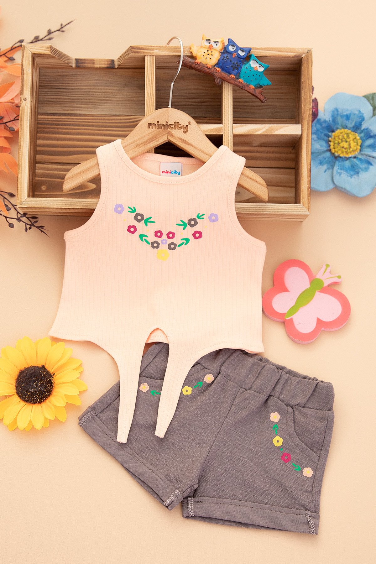 Kız Bebek Önü Bağlamalı Şortlu Takım - 25537 (9-24 Ay)
