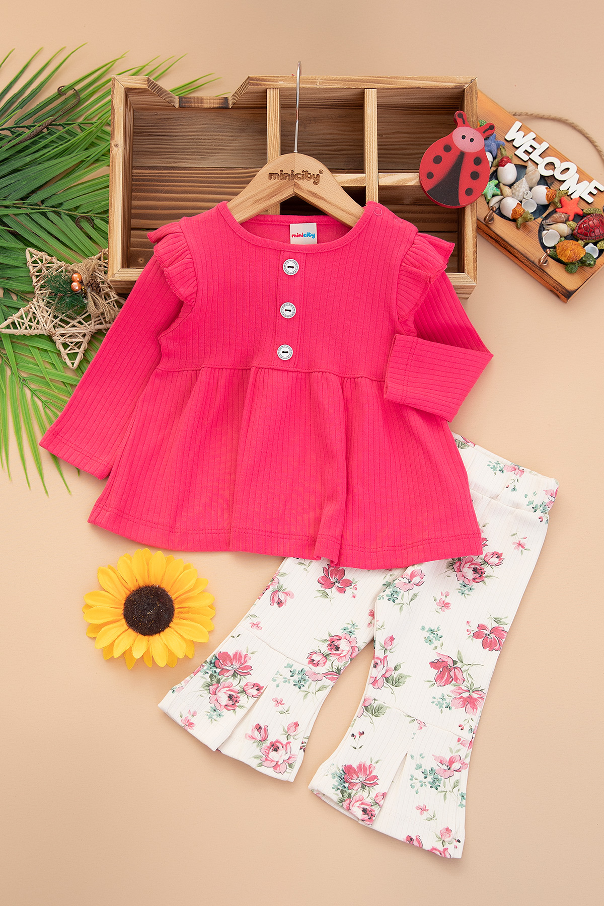 Kız Bebek Önü Düğmeli Takım - 25724 (9-24 Ay)