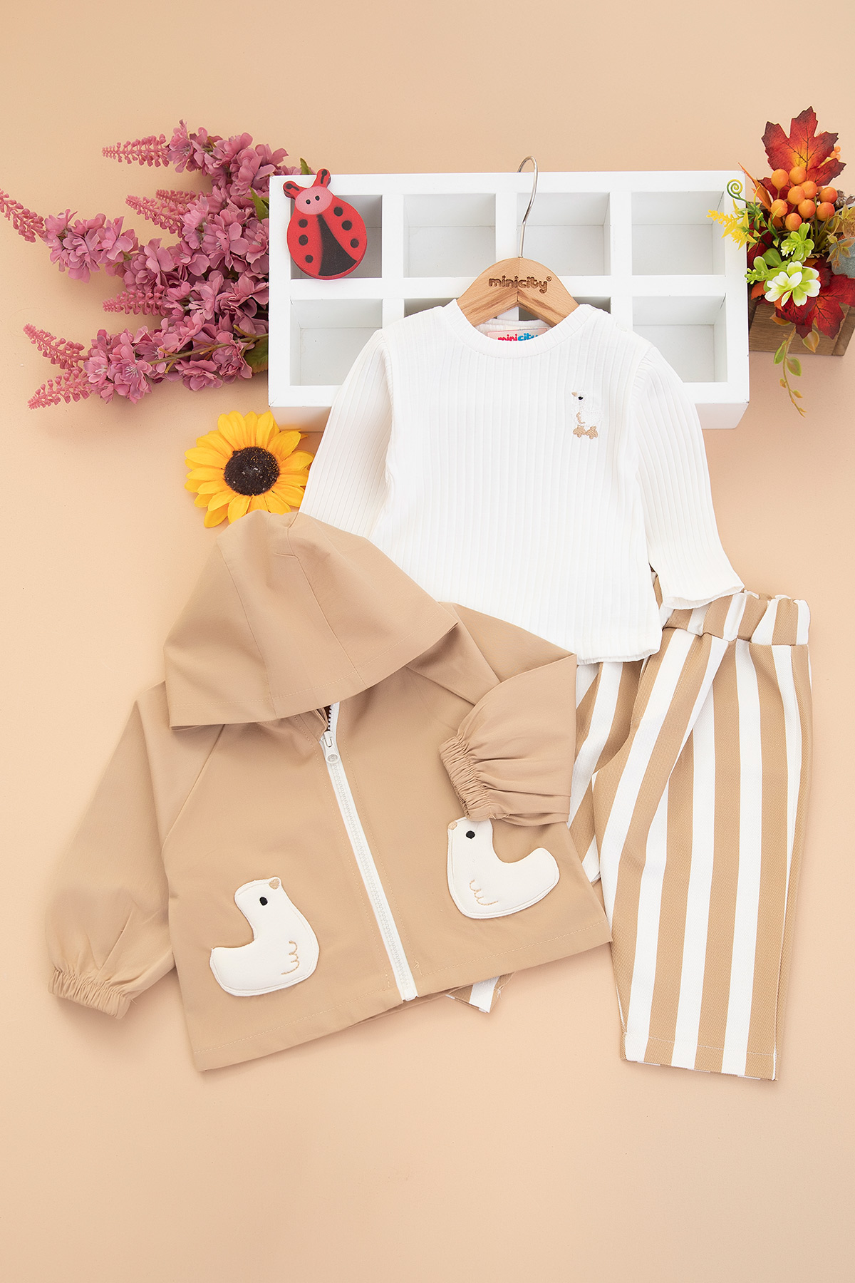 Kız Bebek Ördek Detaylı Üçlü Takım - 10808 (9-24 Ay)
