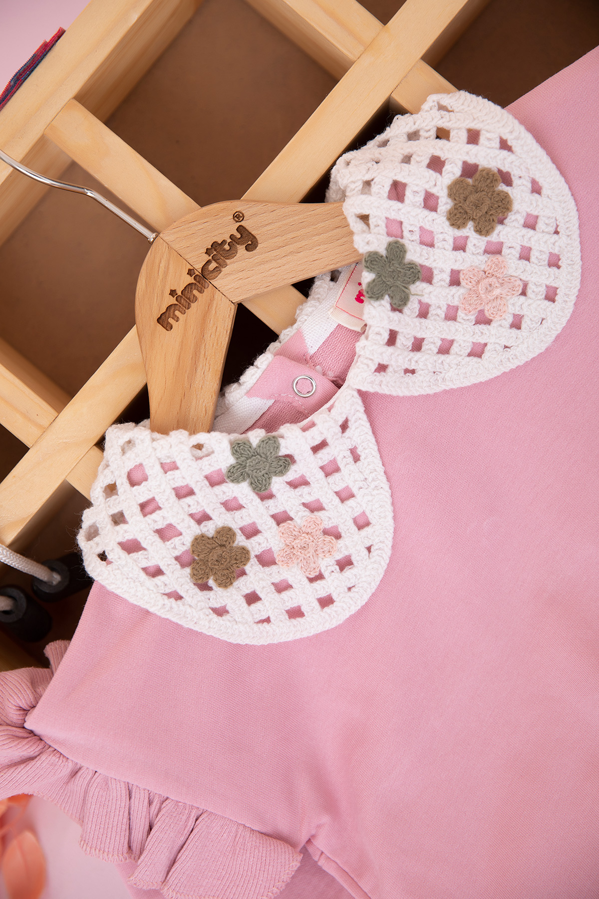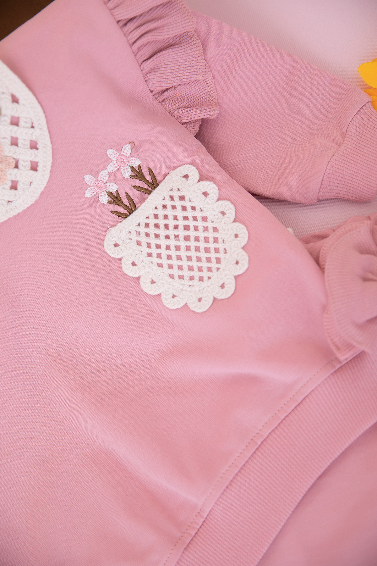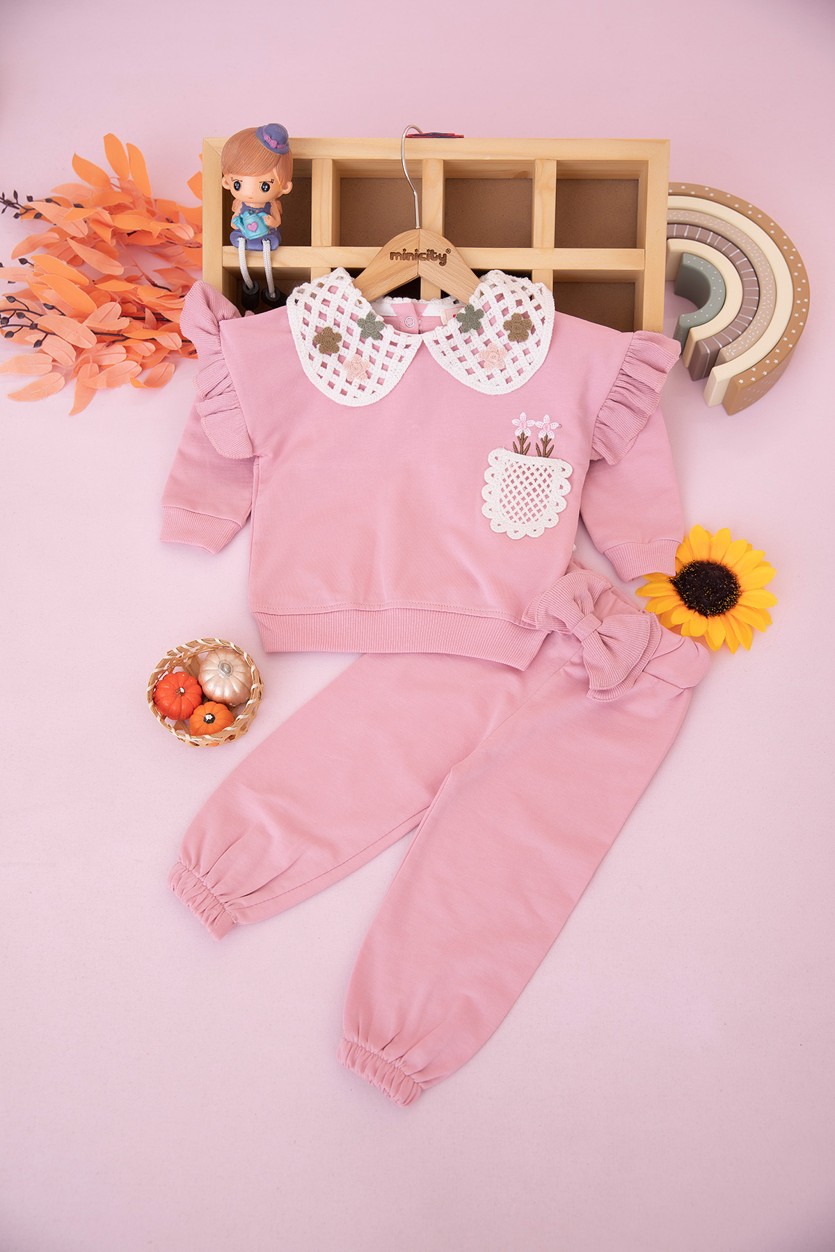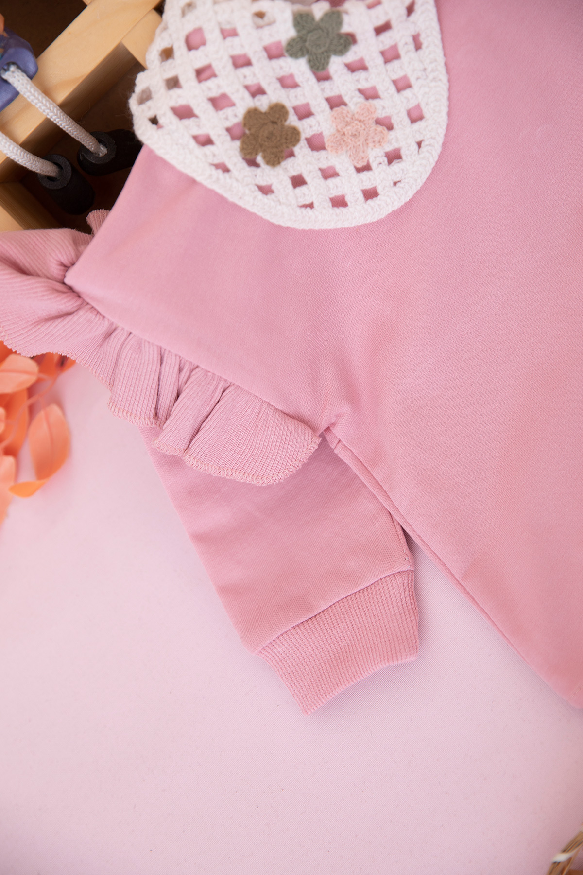 Kız Bebek Örgü Yaka Çiçek Cepli Takım - 10339 (9-24 Ay)