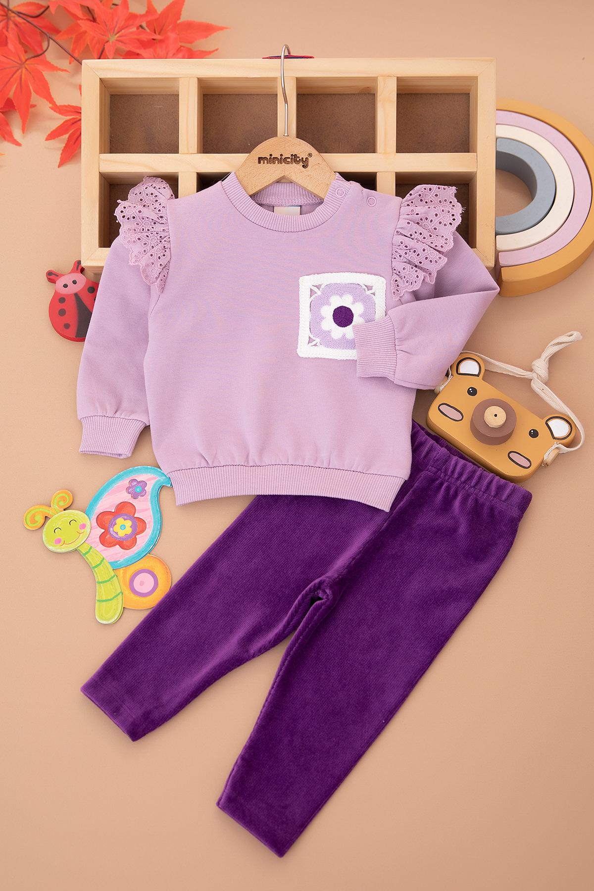 Kız Bebek Örme Cepli İki İp Takım - 24755 (9-24 Ay)
