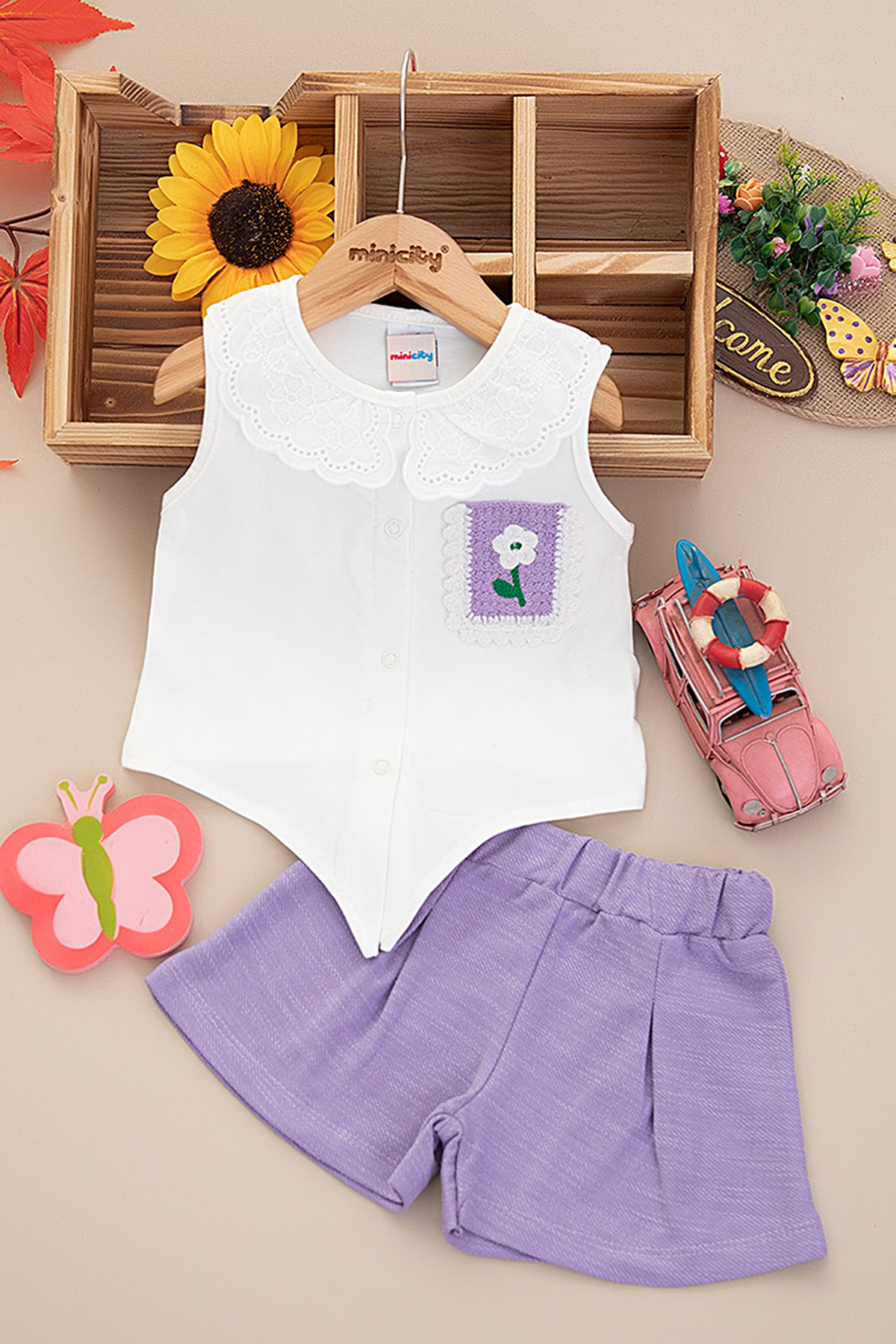 Kız Bebek Örme Cepli Şortlu Takım - 25607 (9-24 Ay)