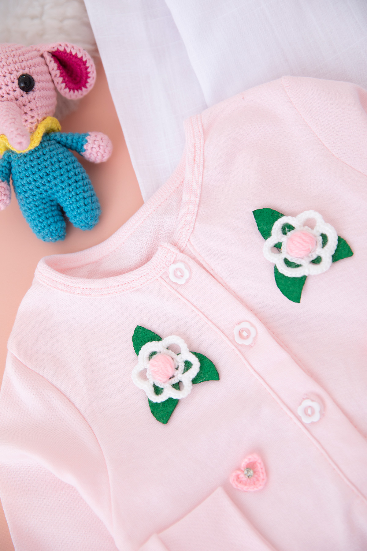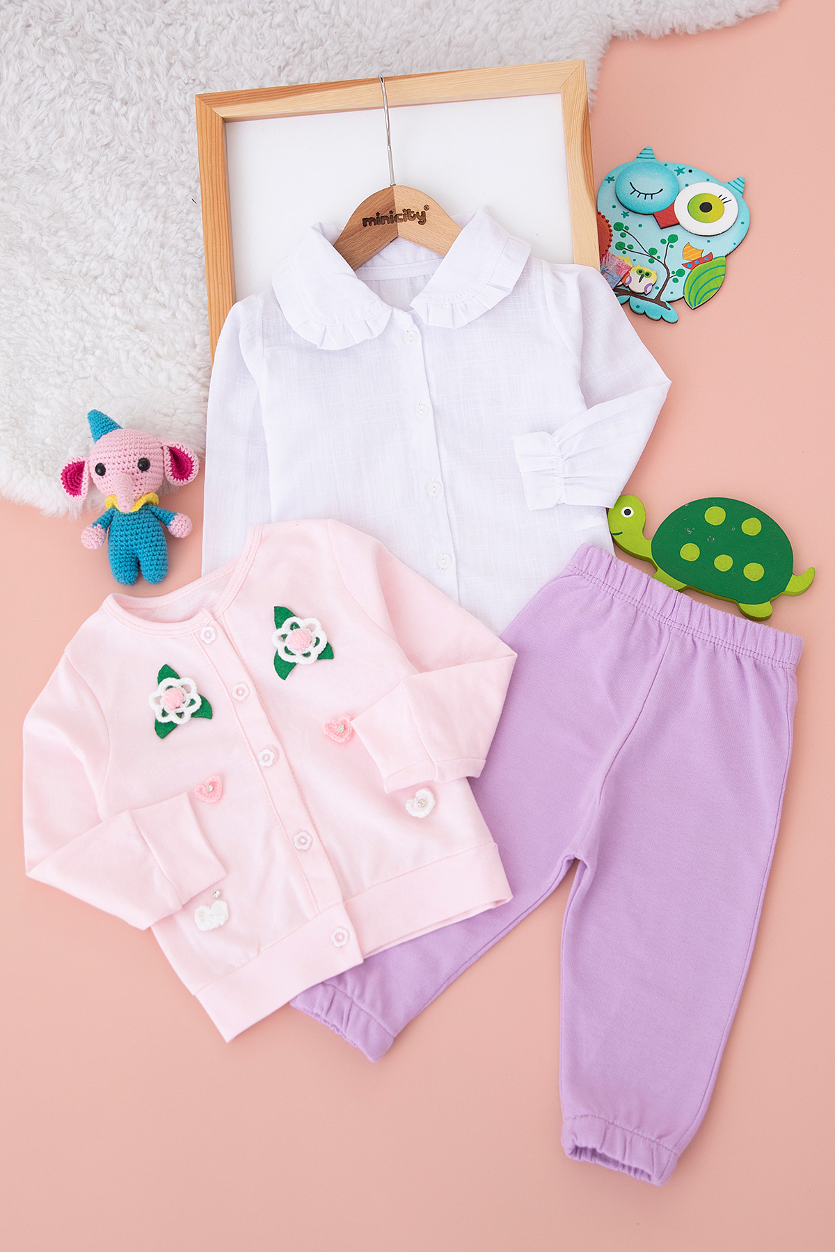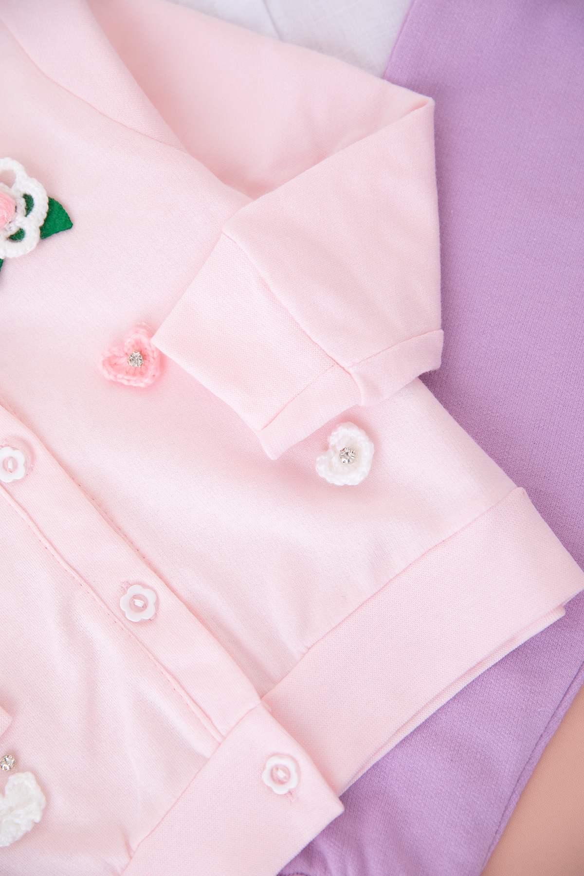 Kız Bebek Örme Çiçekli Hırkalı Takım - 90107 (6-24 Ay)