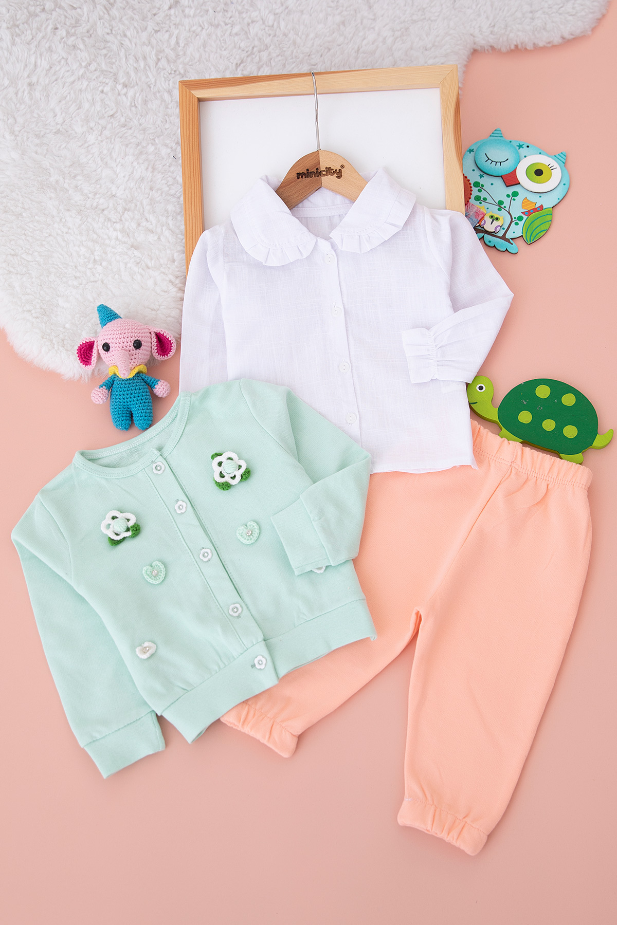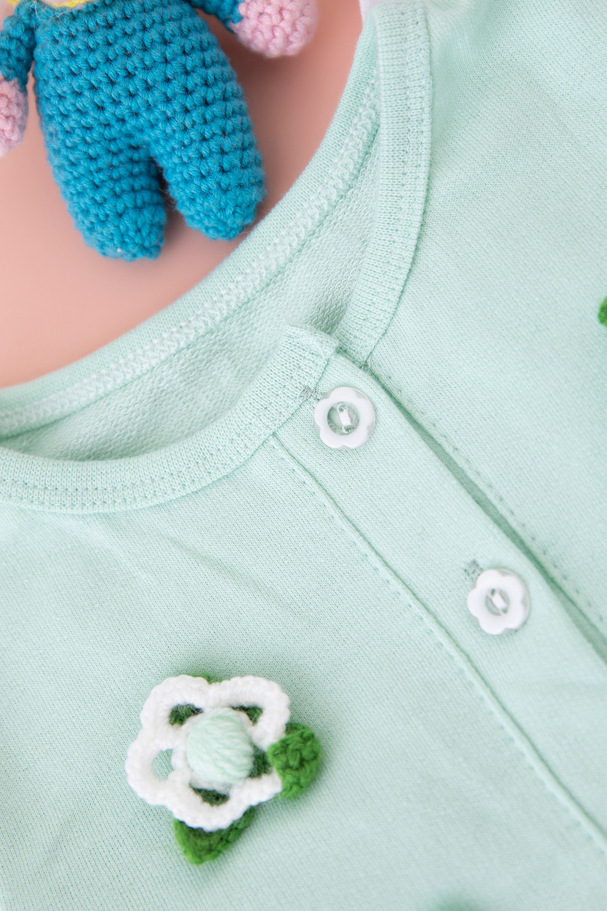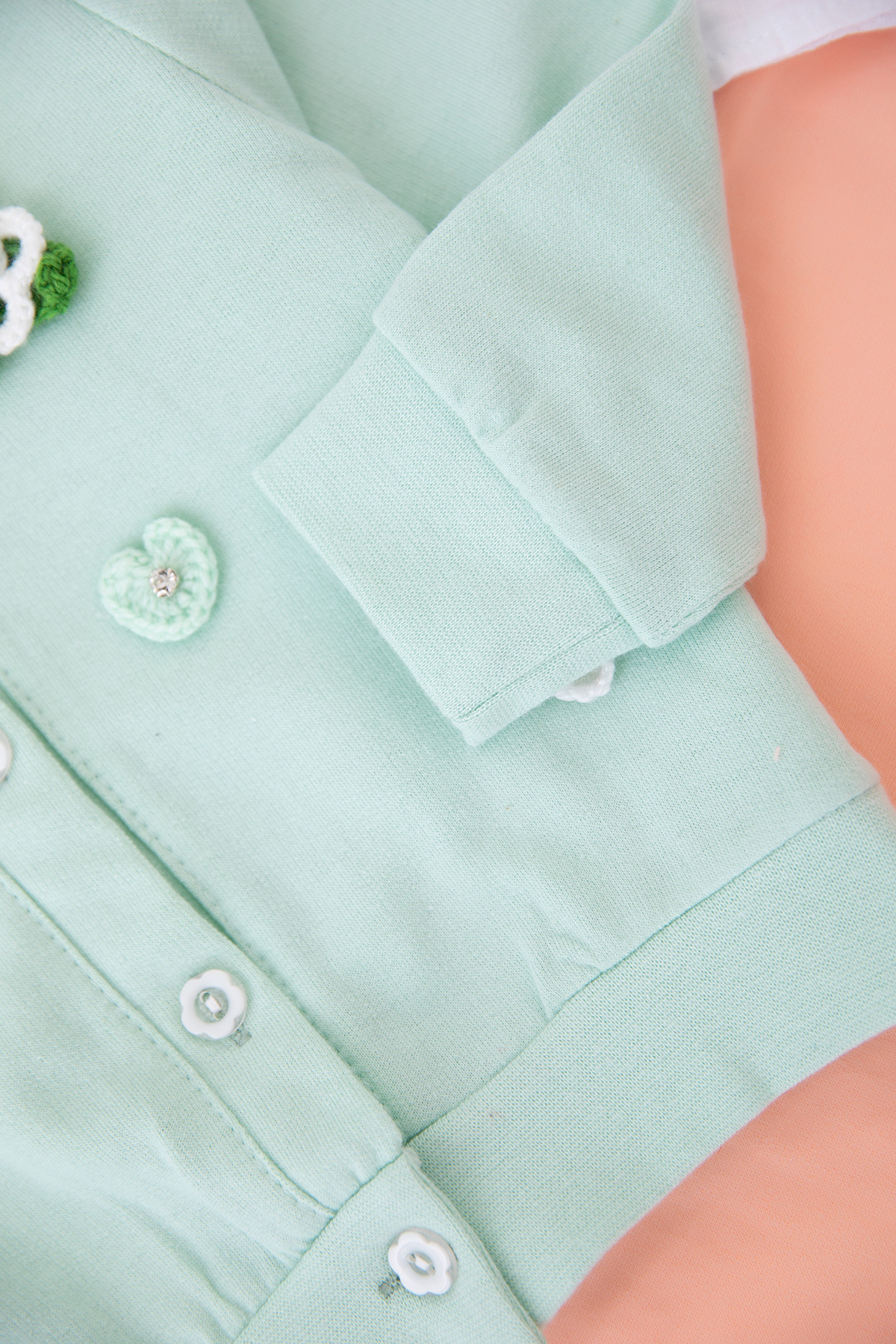 Kız Bebek Örme Çiçekli Hırkalı Takım - 90107 (6-24 Ay)