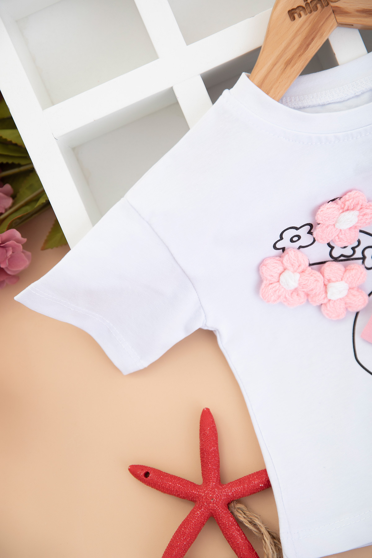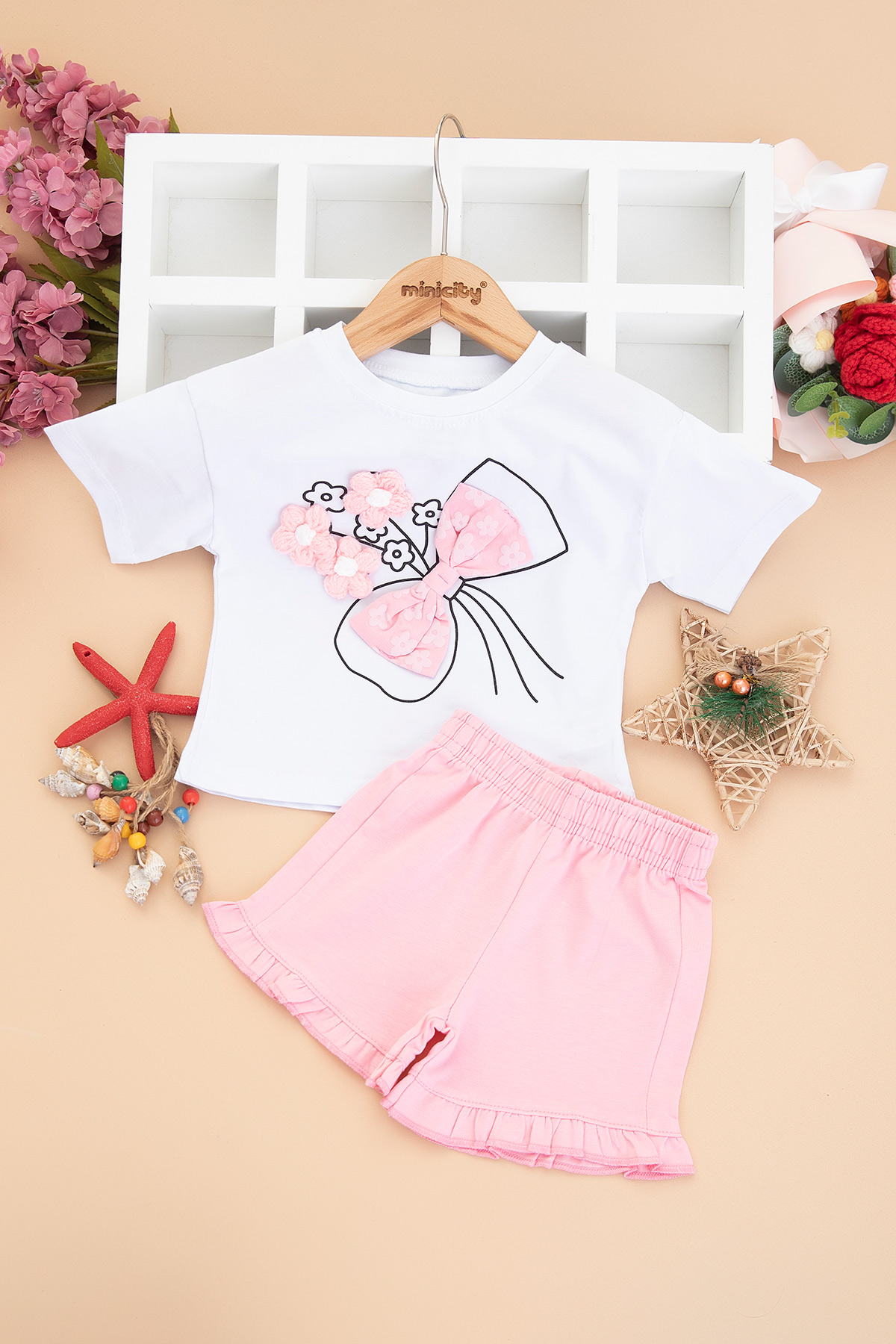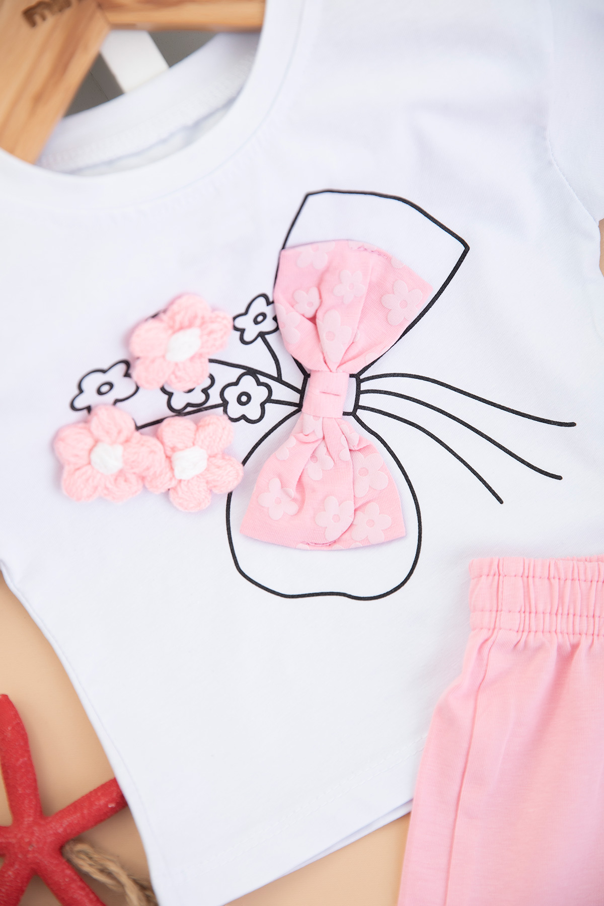Kız Bebek Örme Çiçekli Şortlu Takım - 26479 (9-24 Ay)