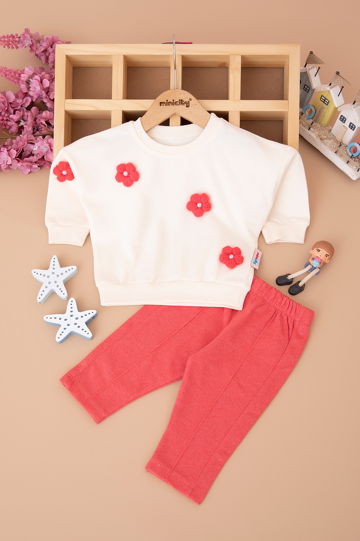 Kız Bebek Örme Çiçekli Takım - 35118 (6-24 Ay)