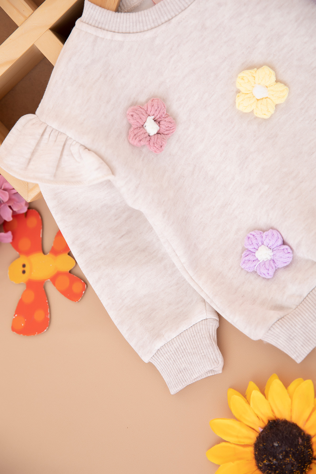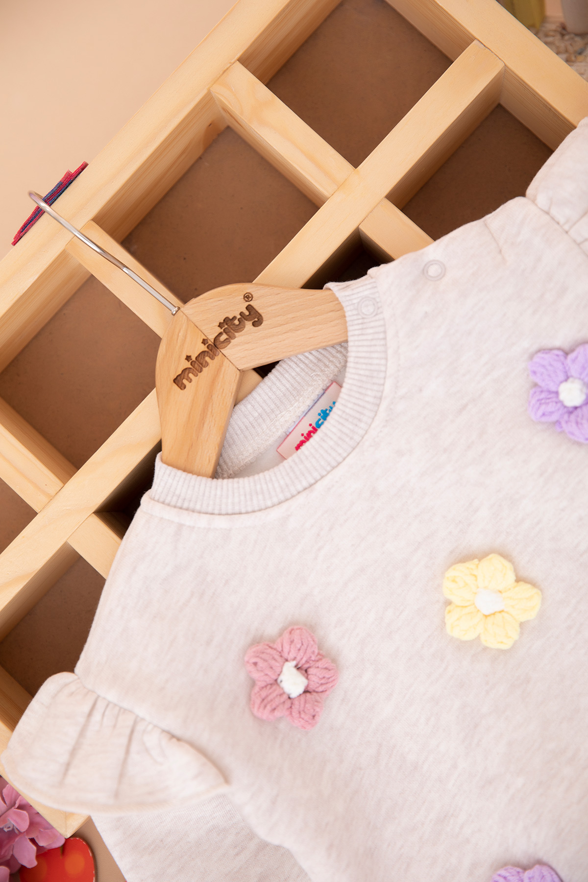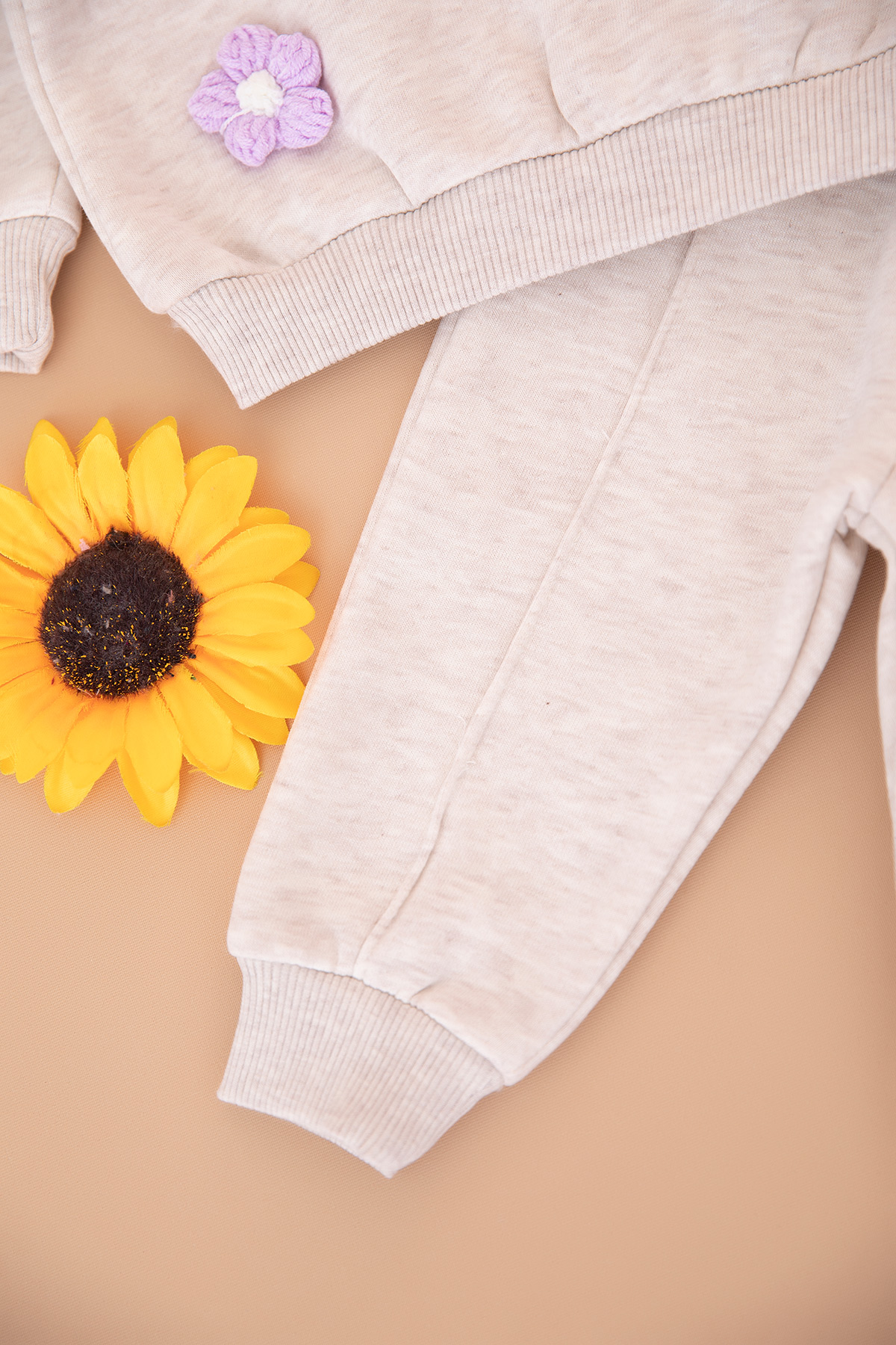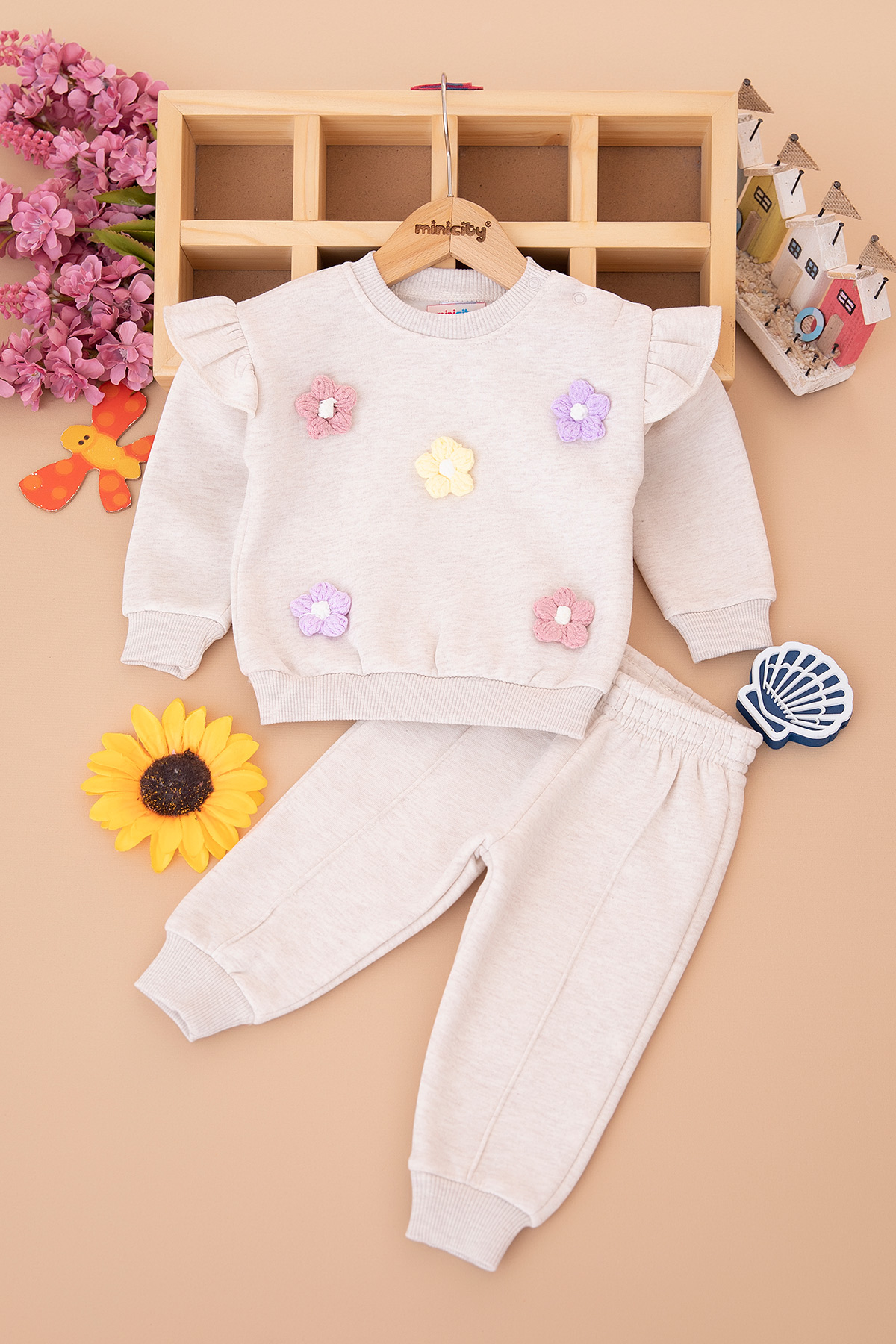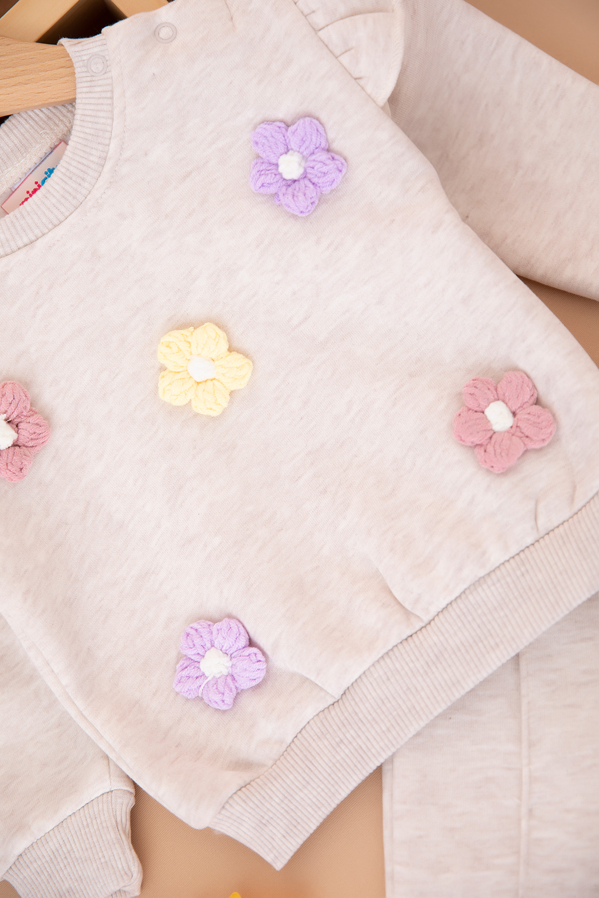 Kız Bebek Örme Çiçekli Üçip Takım - 25975 (9-24 Ay)
