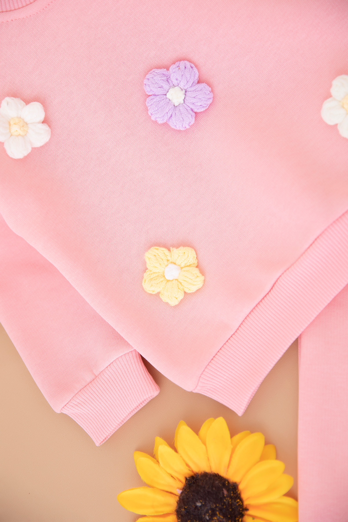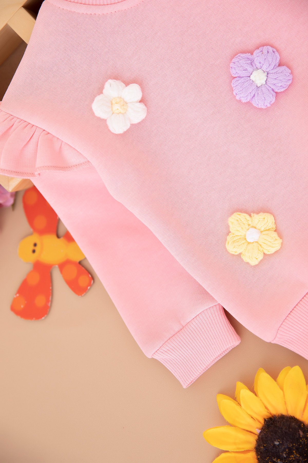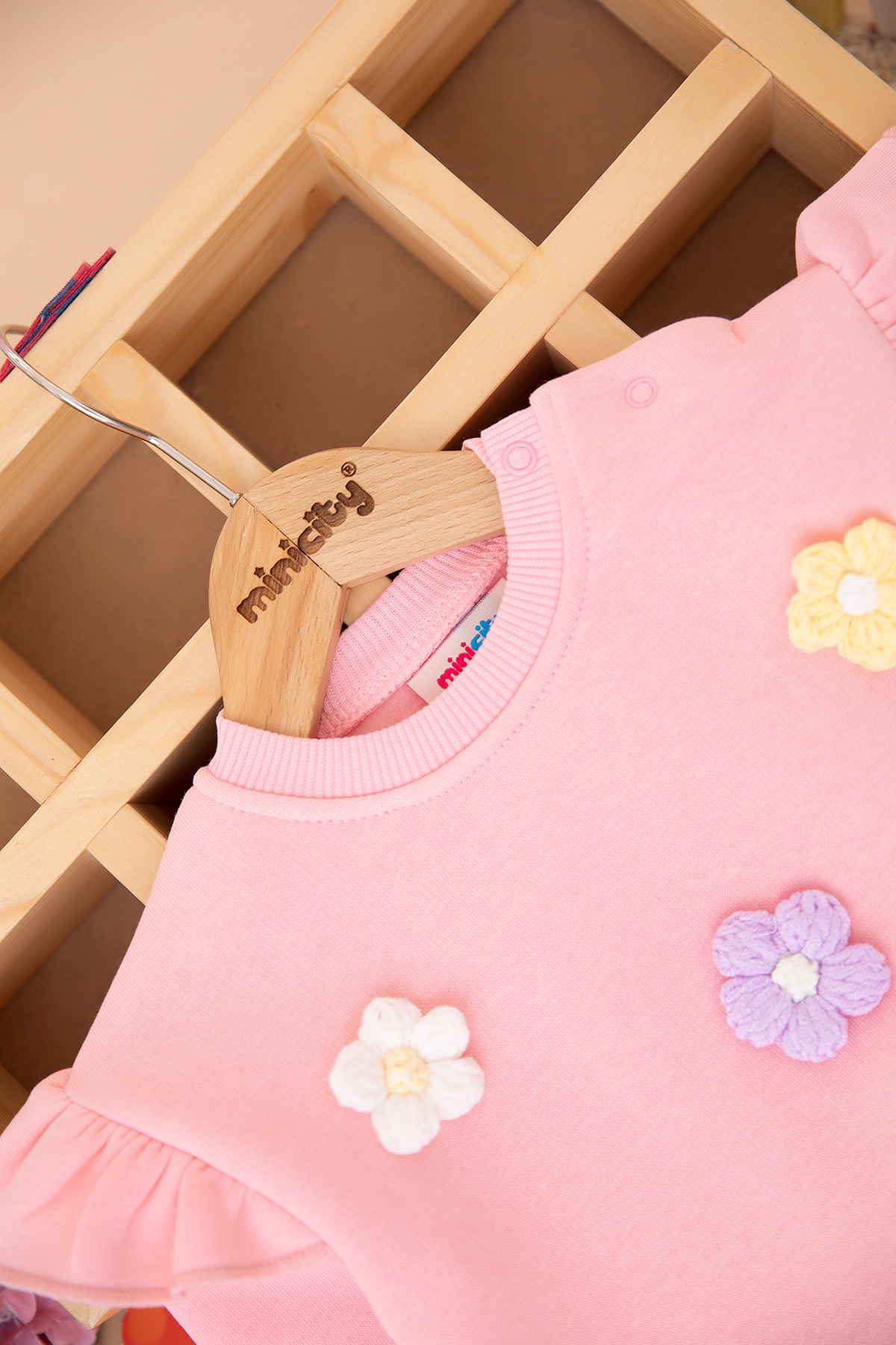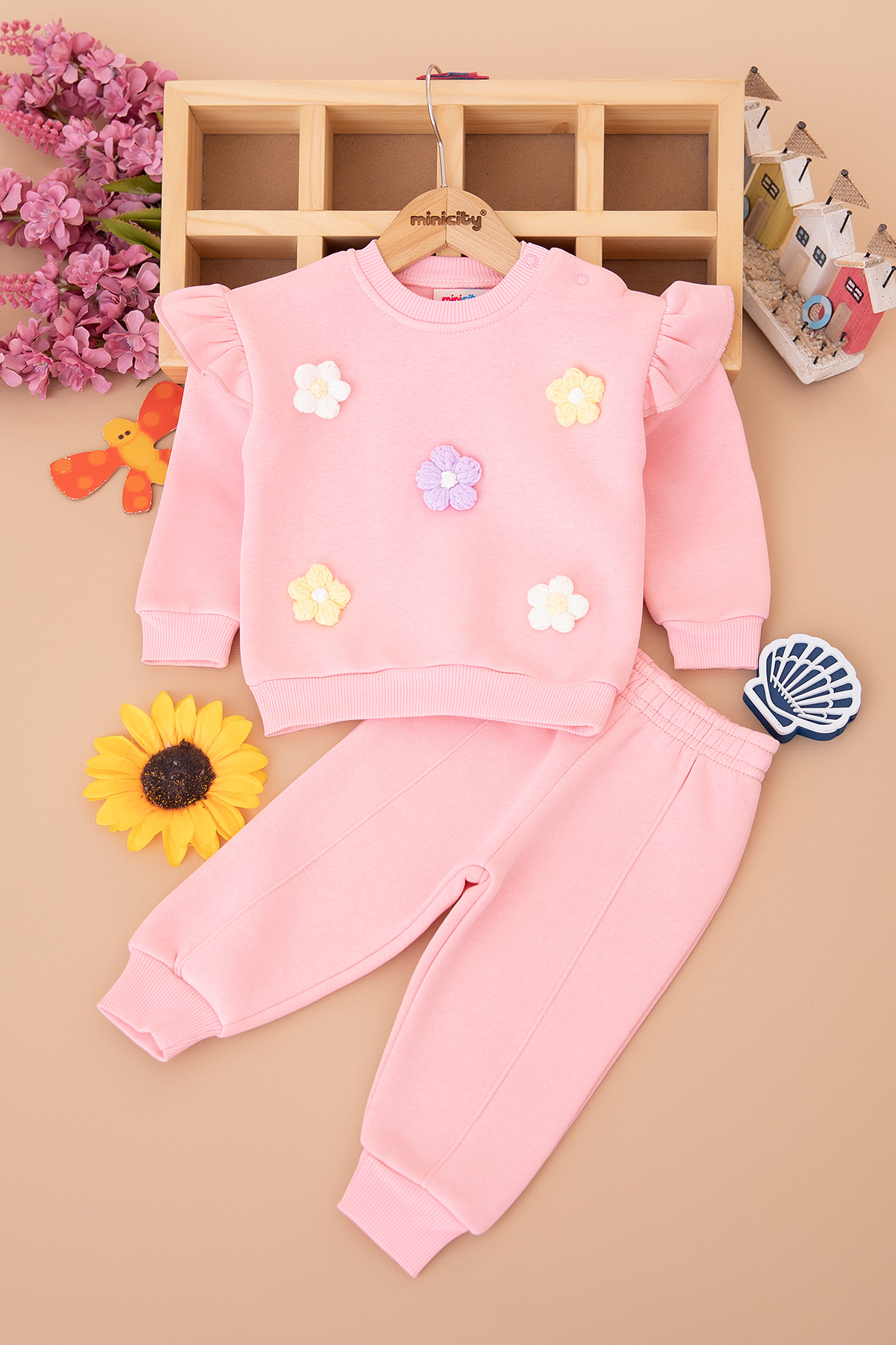 Kız Bebek Örme Çiçekli Üçip Takım - 25975 (9-24 Ay)
