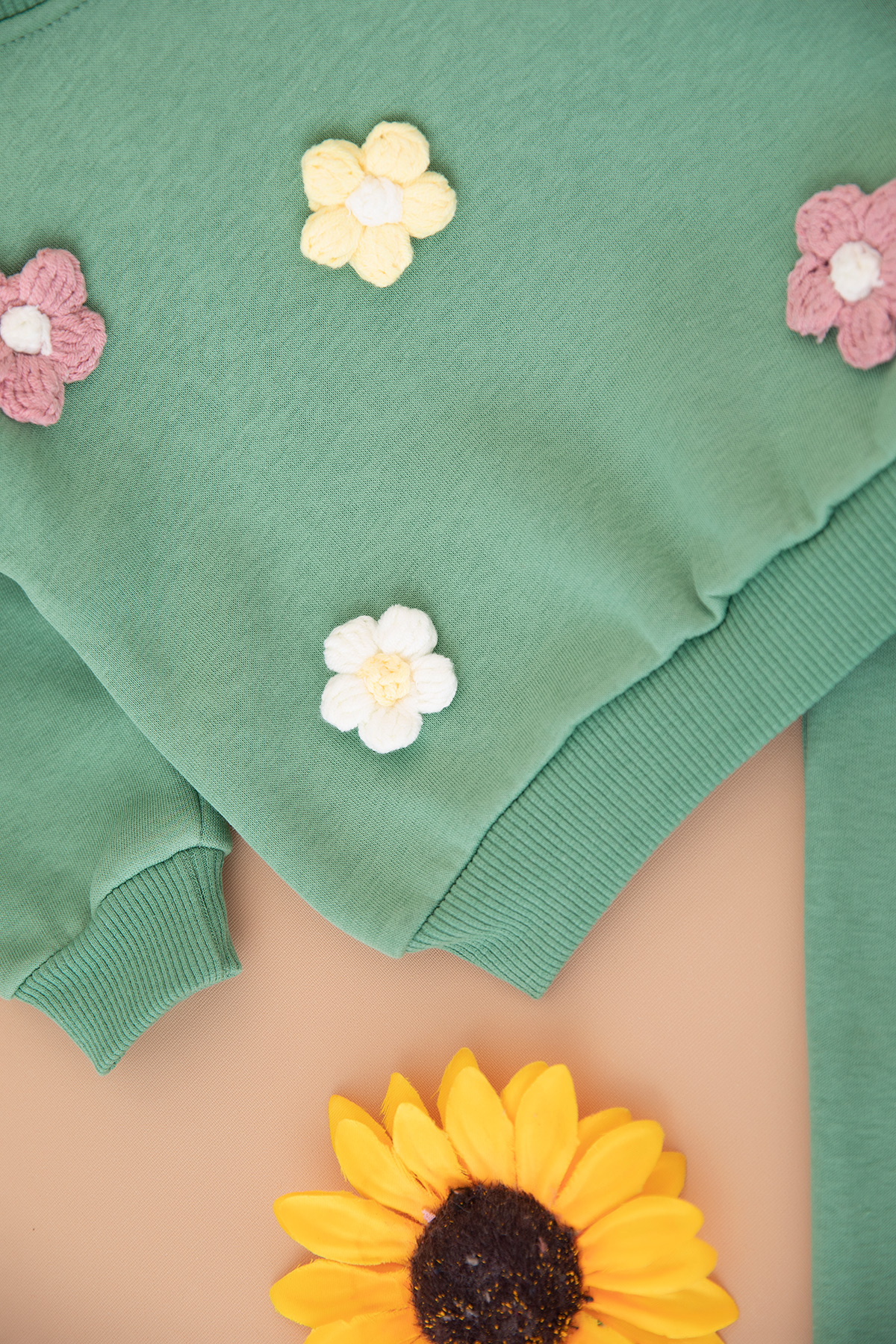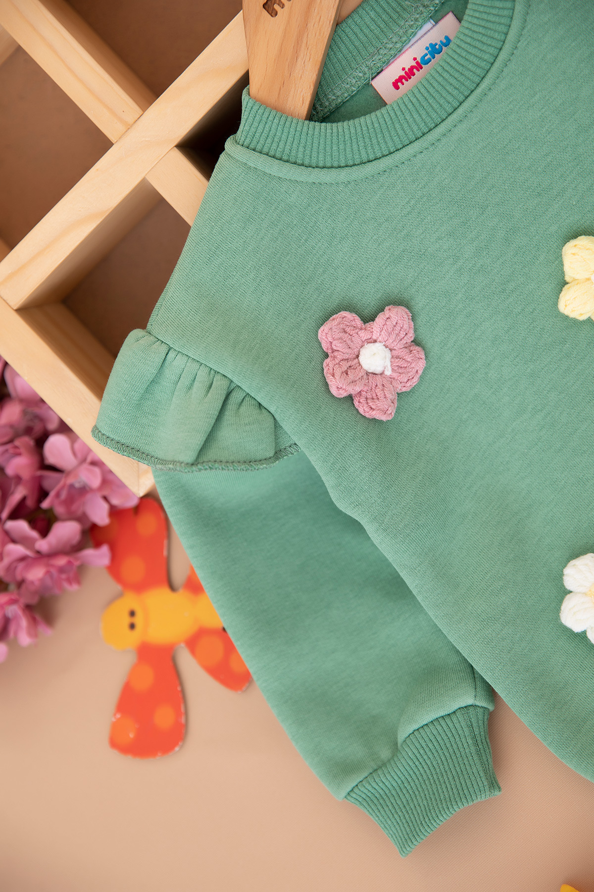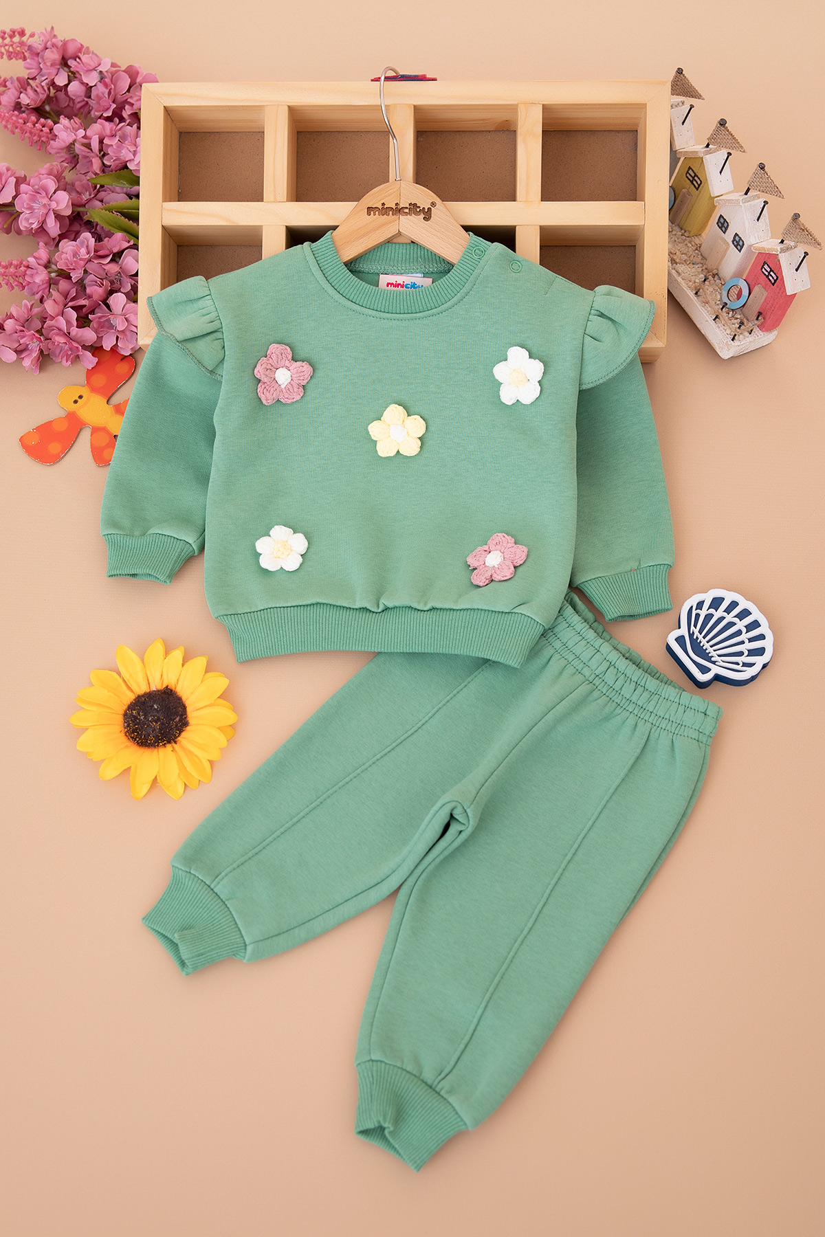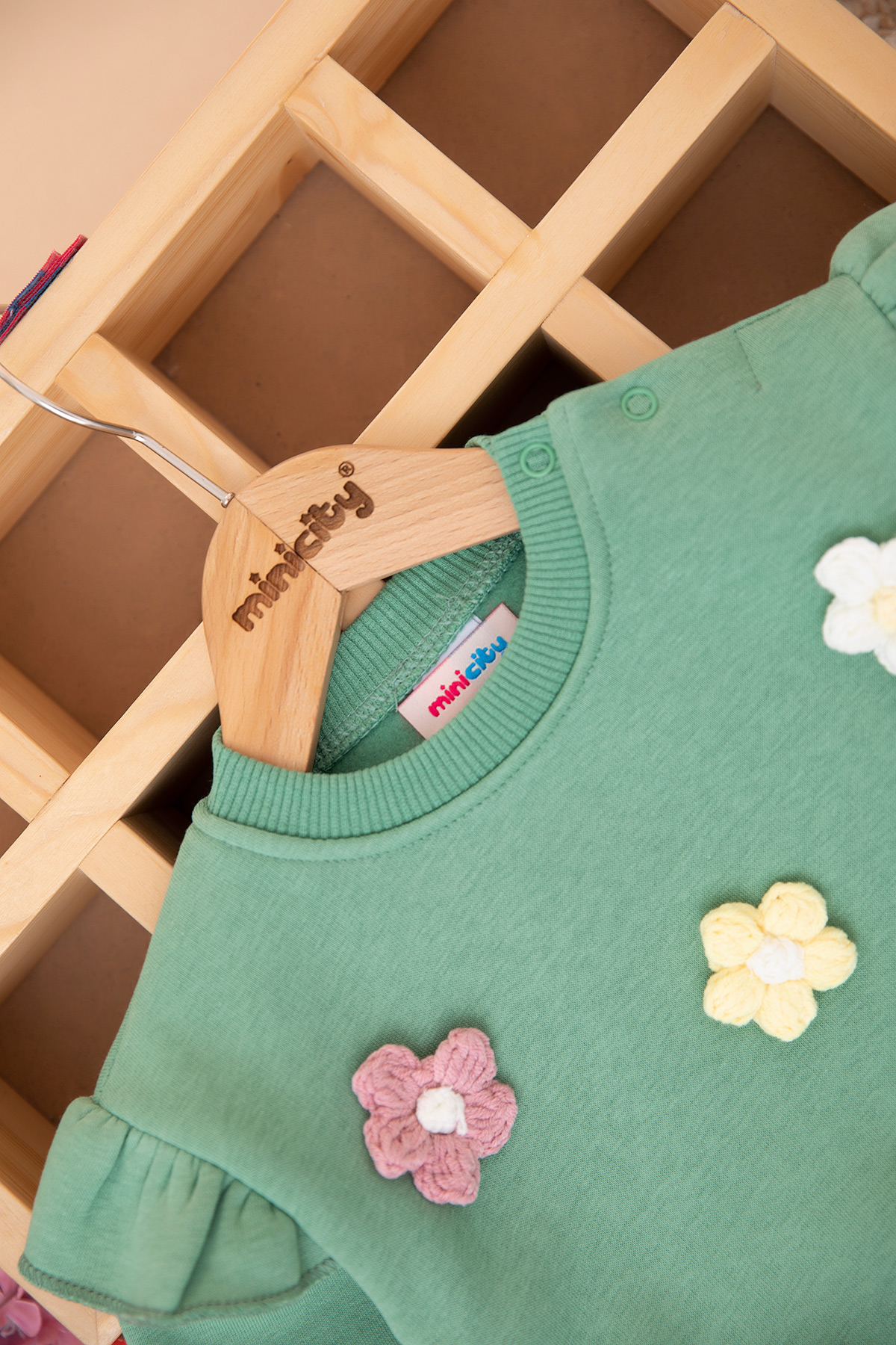 Kız Bebek Örme Çiçekli Üçip Takım - 25975 (9-24 Ay)