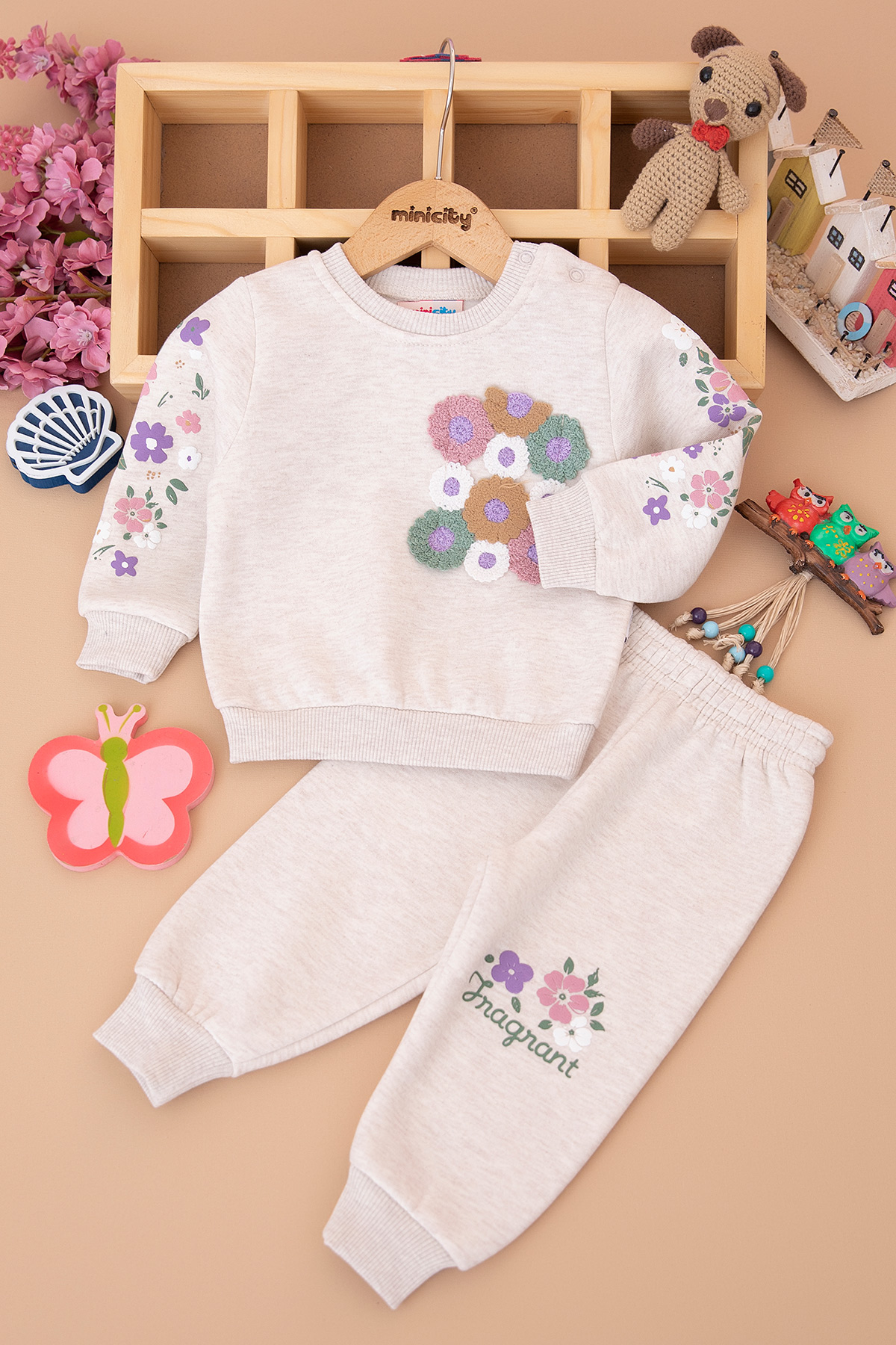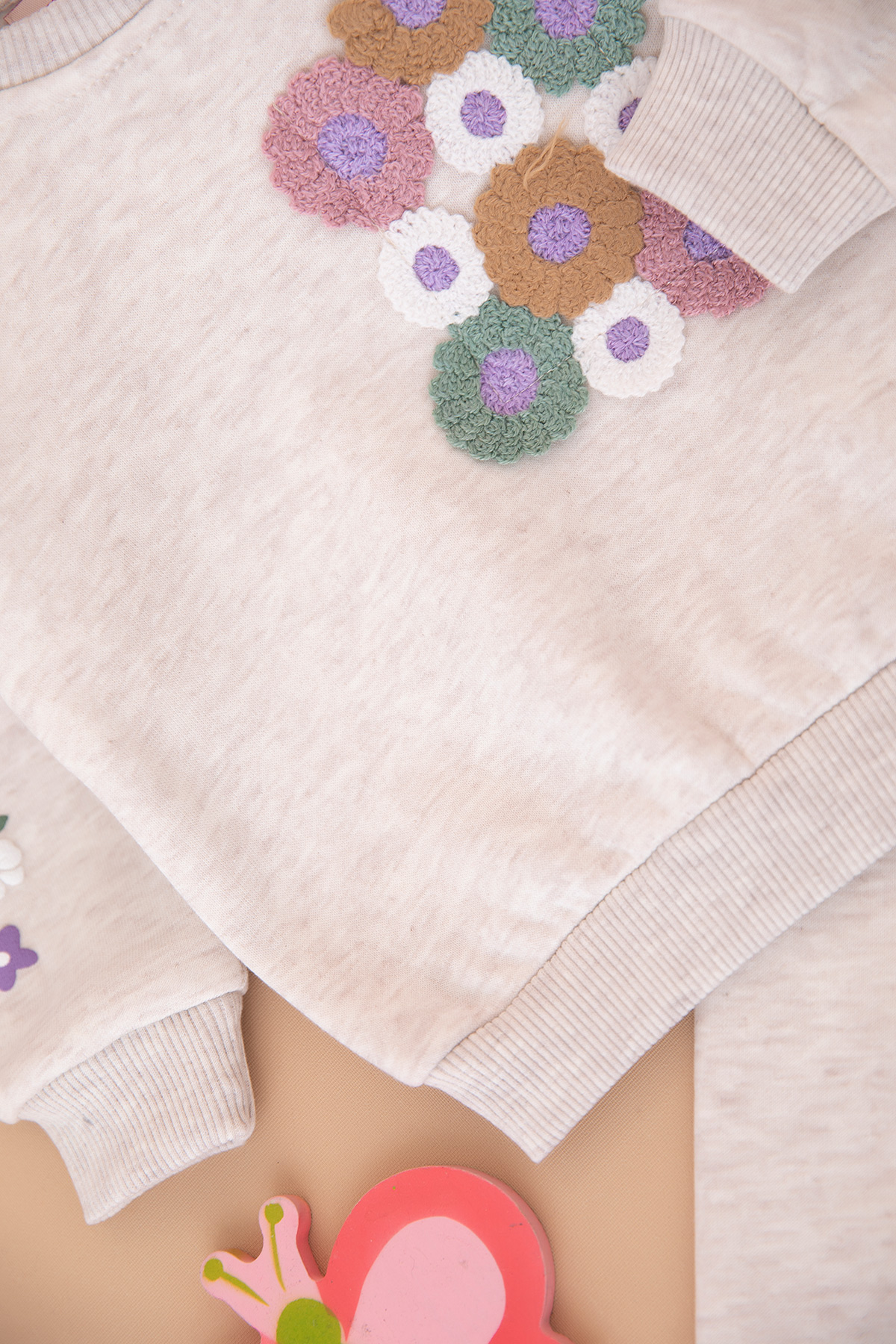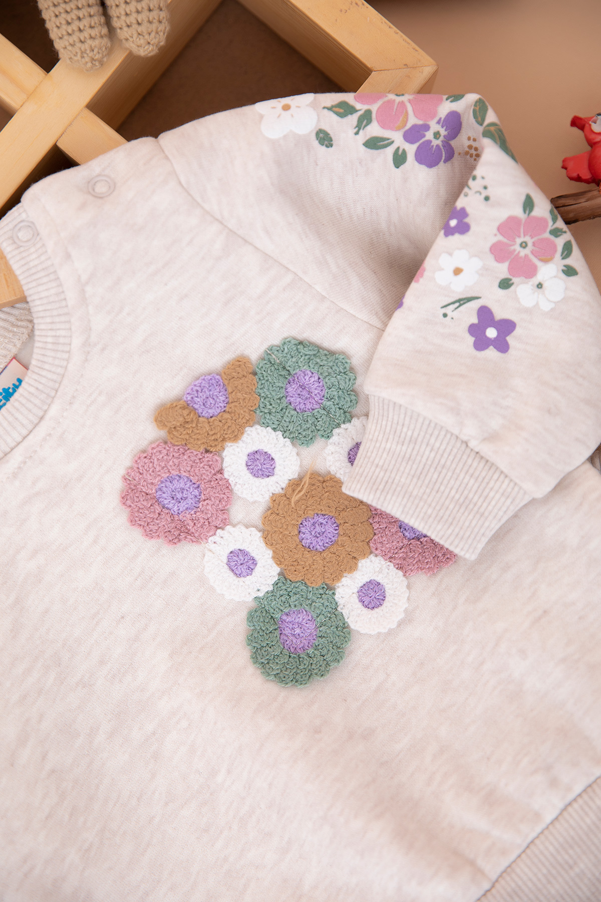 Kız Bebek Örme Papatya Cepli Üçip Takım - 25916 (9-24 Ay)